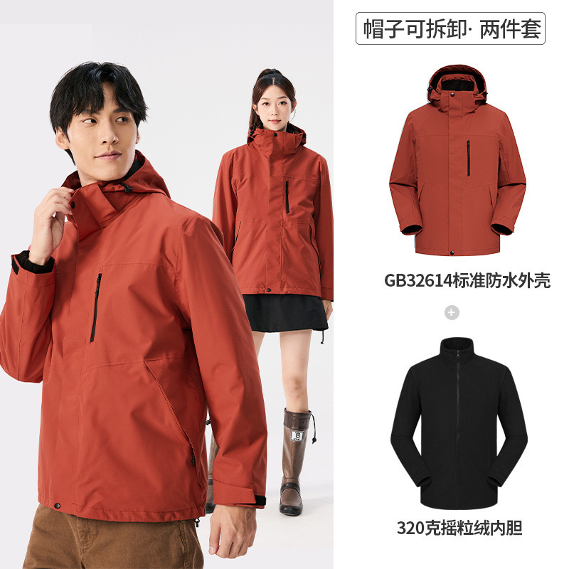 티몰 보 동일 스타일 여성용 3-in-1 커플 방수 방풍 등산복 투피스 세트 남성용