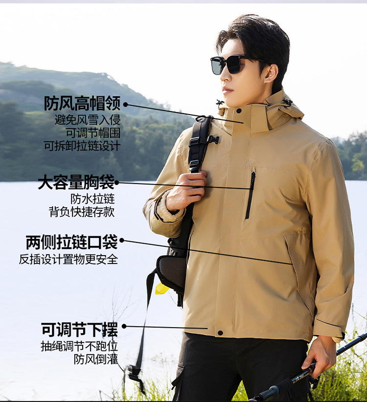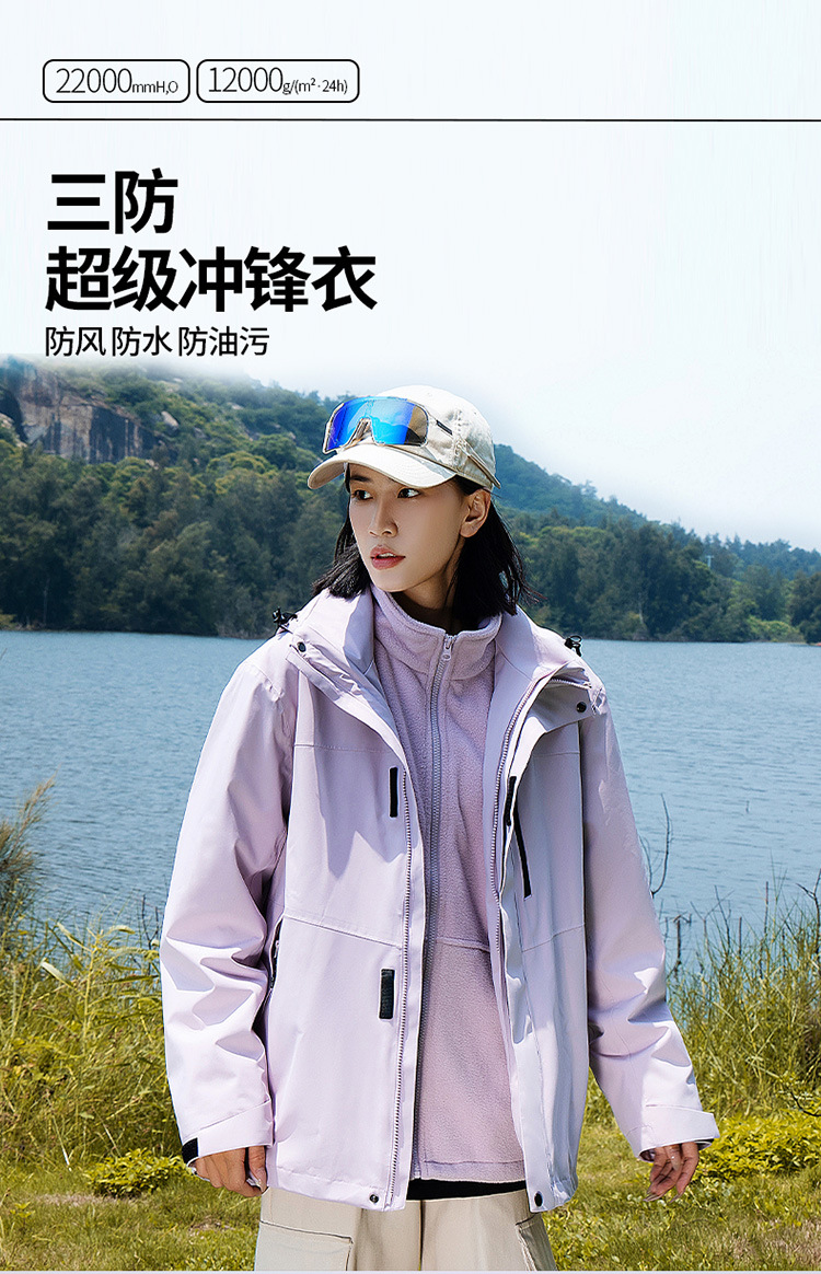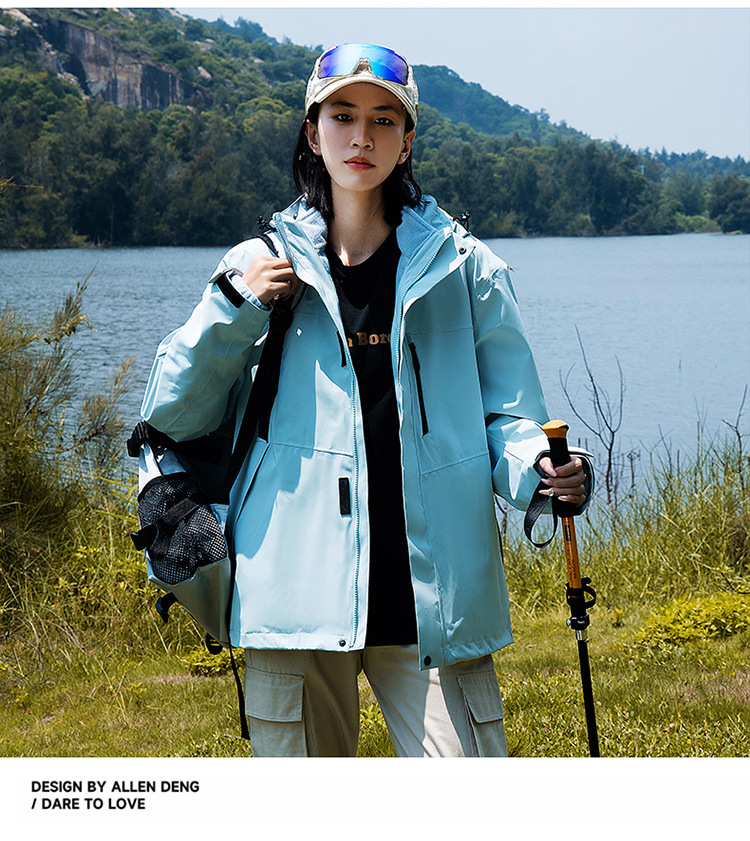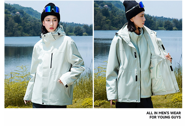 티몰 보 동일 스타일 여성용 3-in-1 커플 방수 방풍 등산복 투피스 세트 남성용스토어 가기