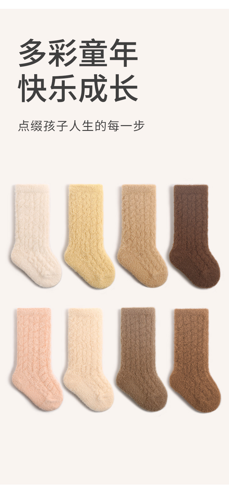 2024 겨울 새로운 아기 양말 기모 두꺼운 따뜻한 아기 양말 단색 남성과 여성 어린이 밍크 벨벳 튜브 양말스토어 가기