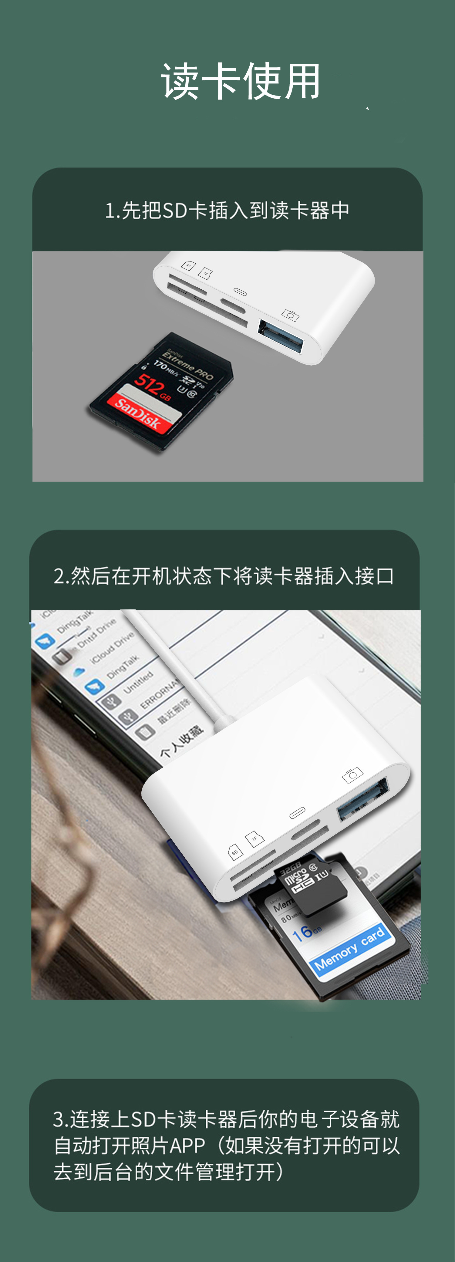 • 4-in-1 카드 리더기 Type-c 헤드