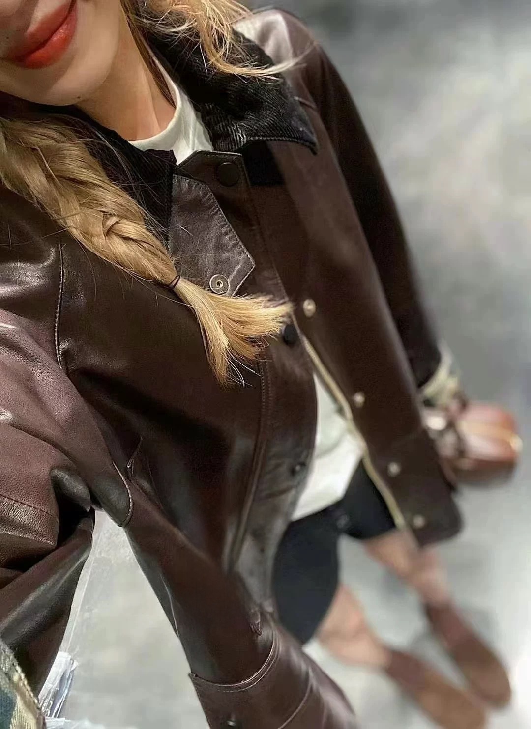 유럽 2024 정품 가죽 야채 탄닝 양가죽 가죽 의류 빈티지 툴링 가죽 자켓 하이 퀄리티 중간 긴 느슨한 코트 여성스토어 가기