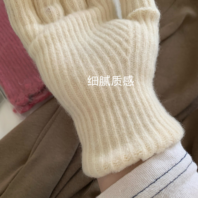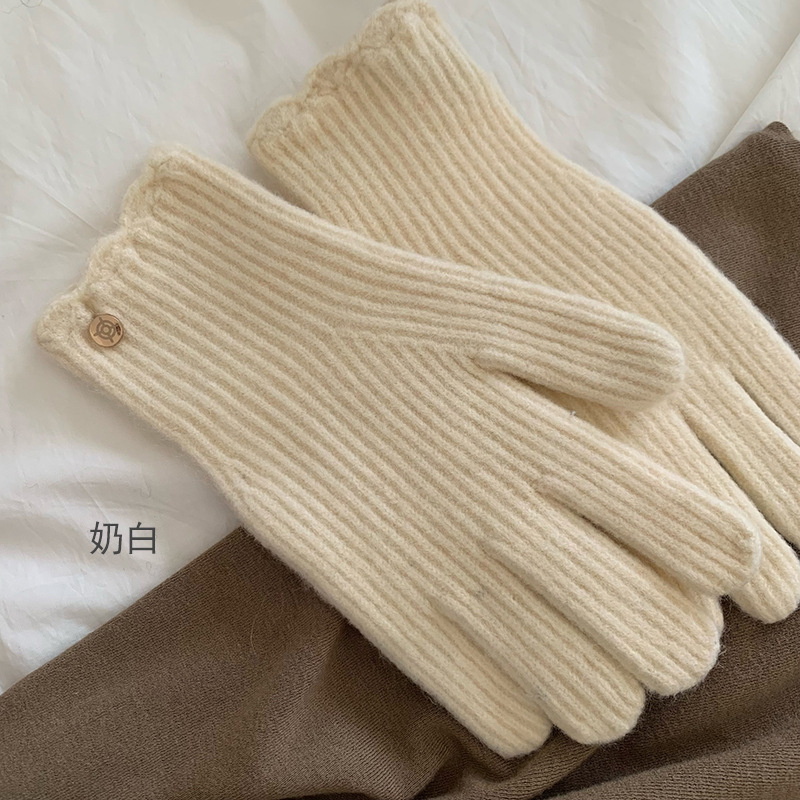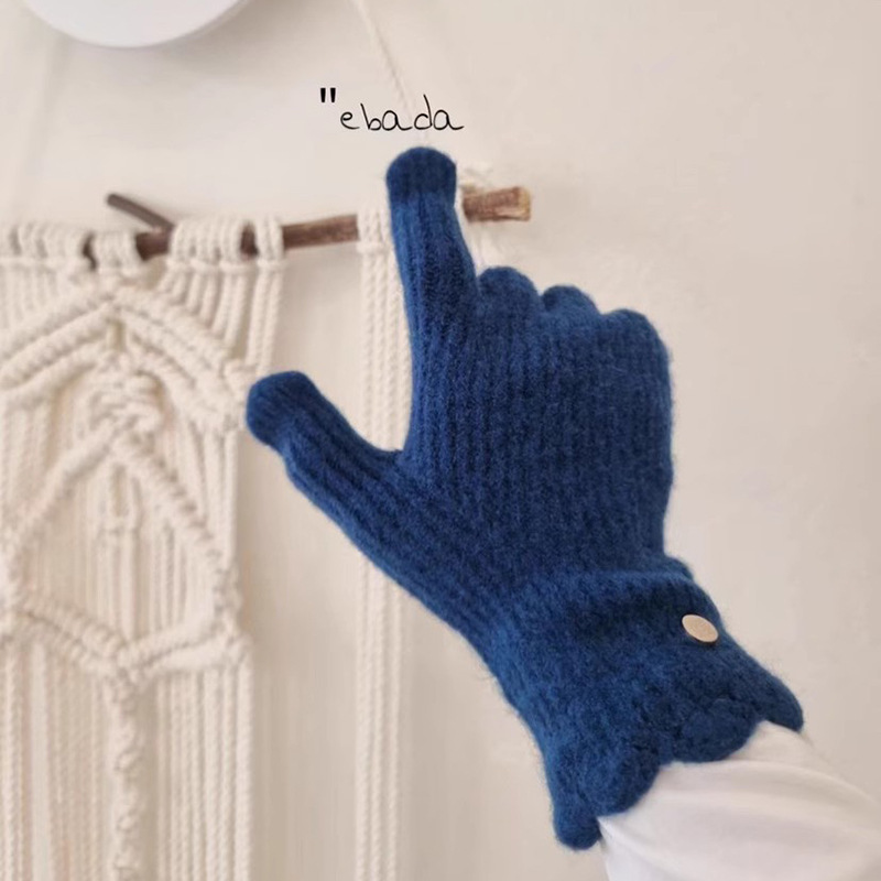 韩国进口ebada花边纯色羊毛手套ins秋冬保暖百搭女式露指可玩手机