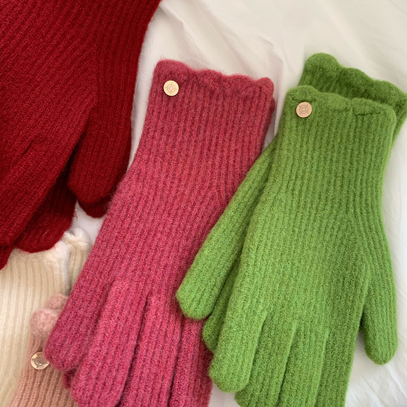 수출 한국 소프트 왁스 솔리드 컬러 레이스 울 장갑 여성의 겨울 따뜻한 니트 5 손가락 터치 스크린 장갑