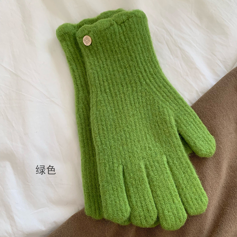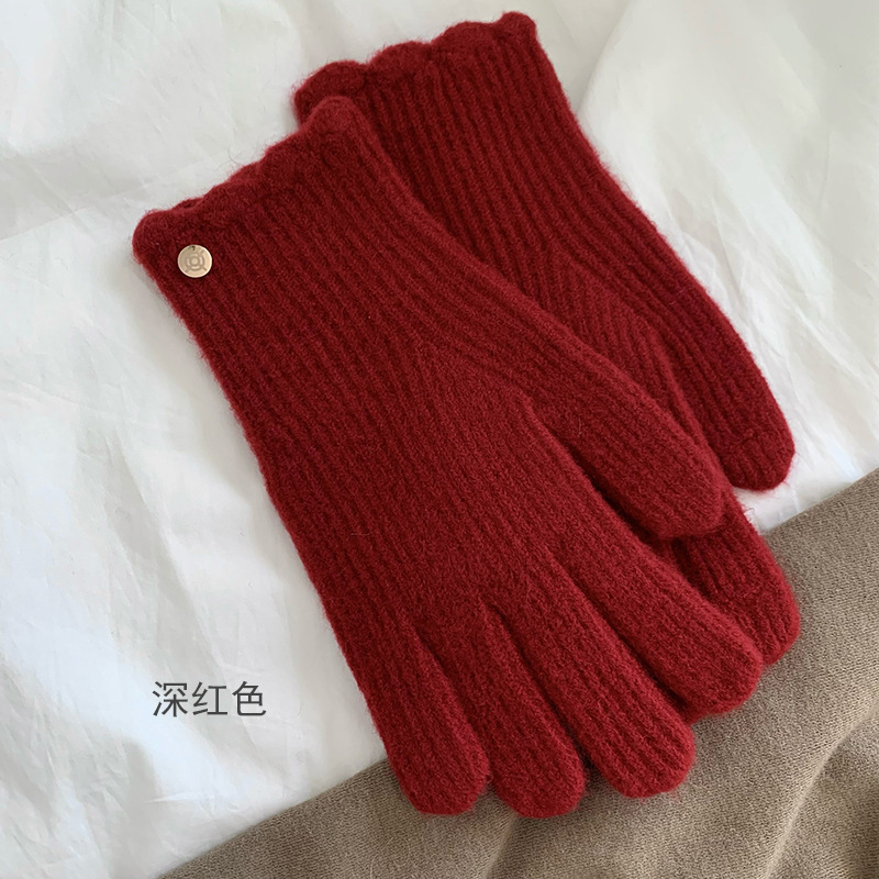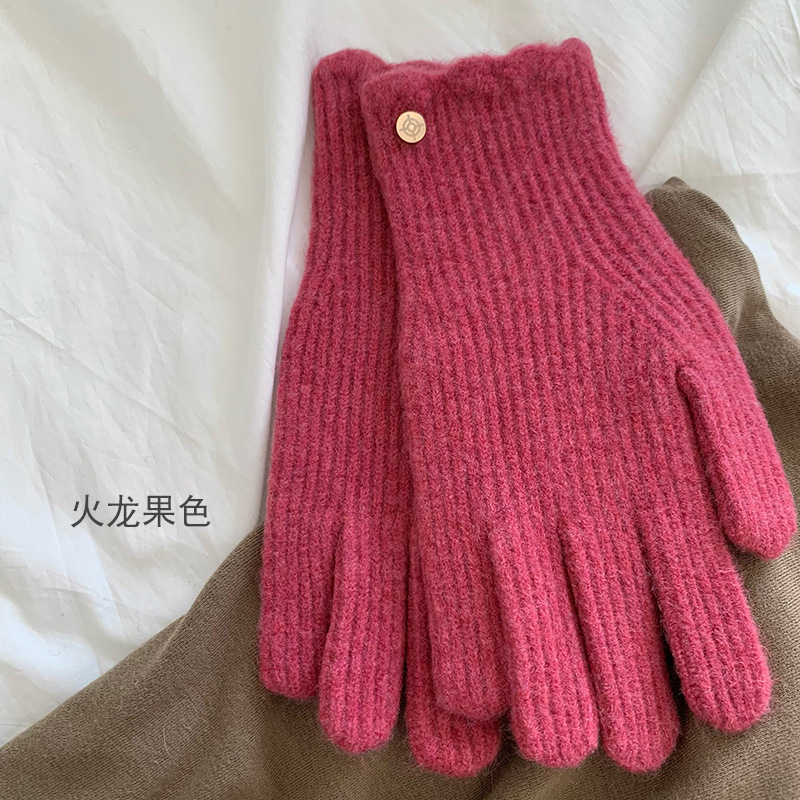 수출 한국 소프트 왁스 솔리드 컬러 레이스 울 장갑 여성의 겨울 따뜻한 니트 5 손가락 터치 스크린 장갑스토어 가기