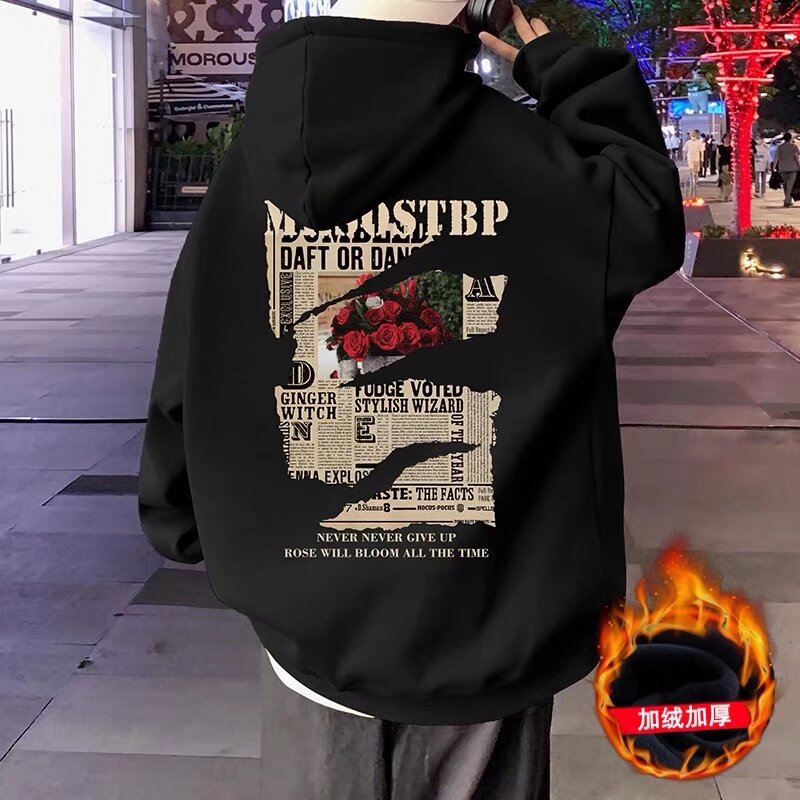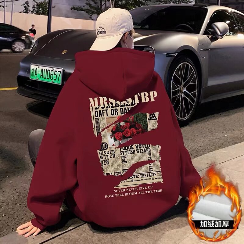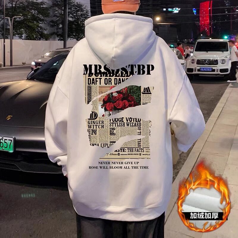 아메리칸 스타일 헤비 후드 스웨트 셔츠 남자의 가을 새 기모 두꺼운 코트 시티 보이 트렌디 브랜드 올 매치 탑