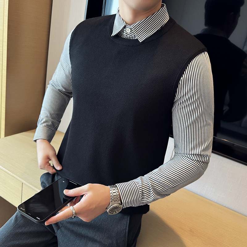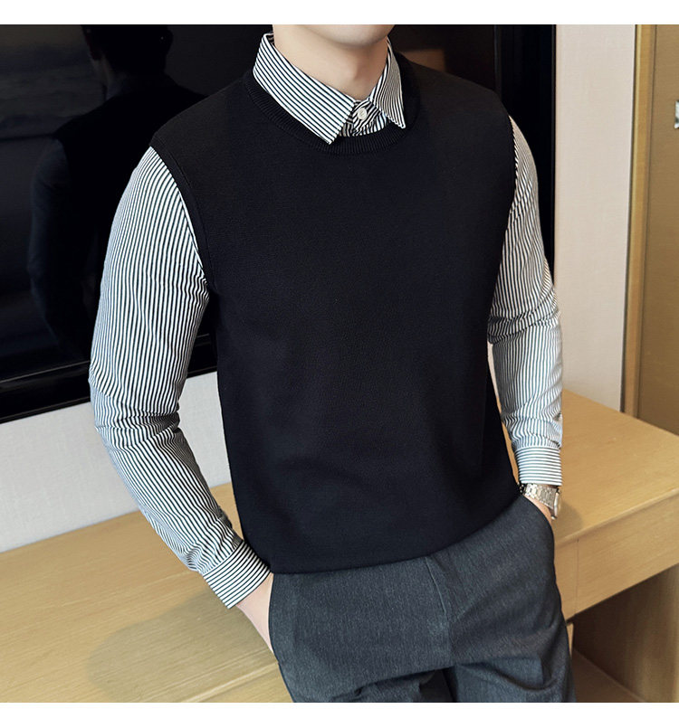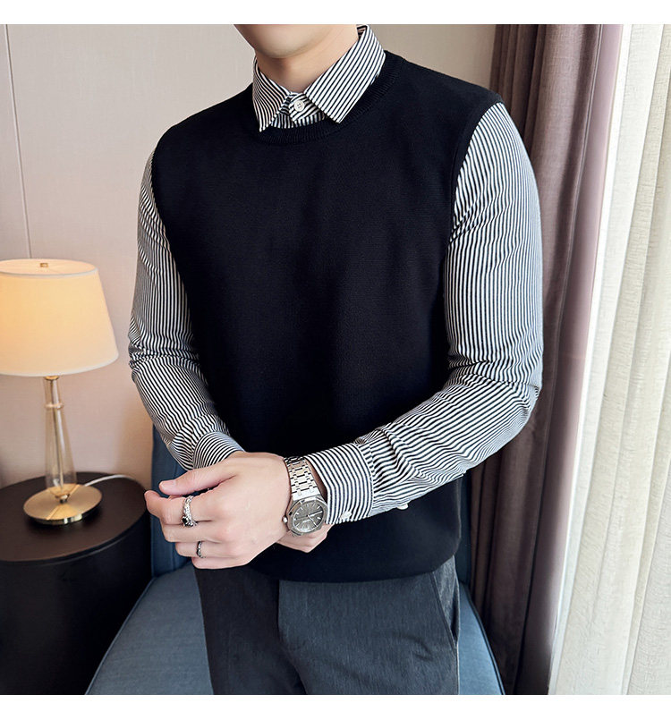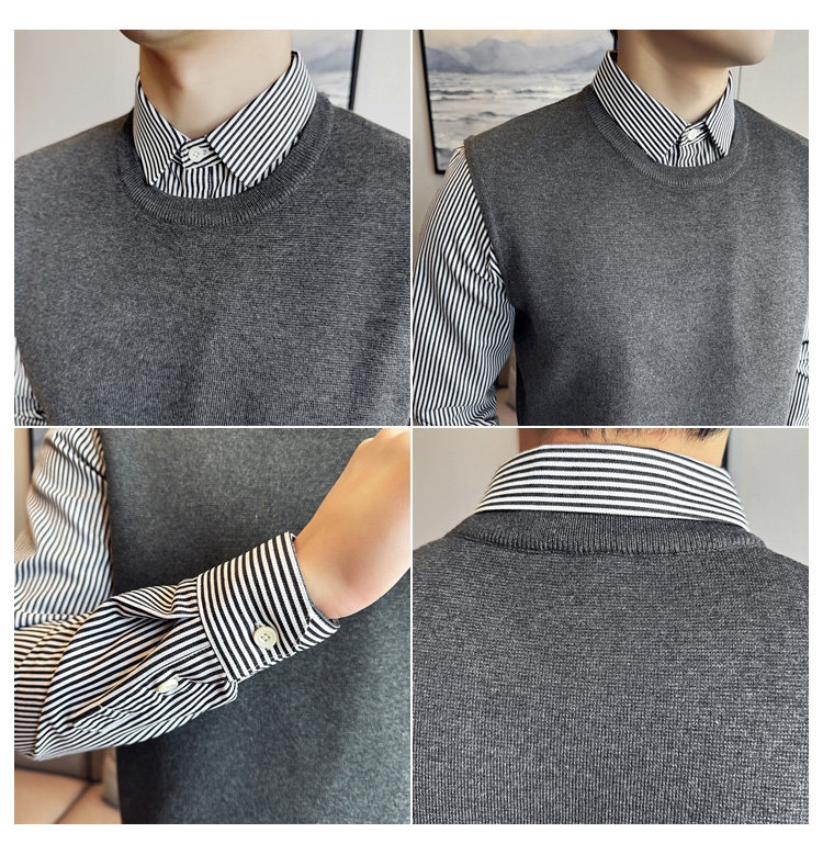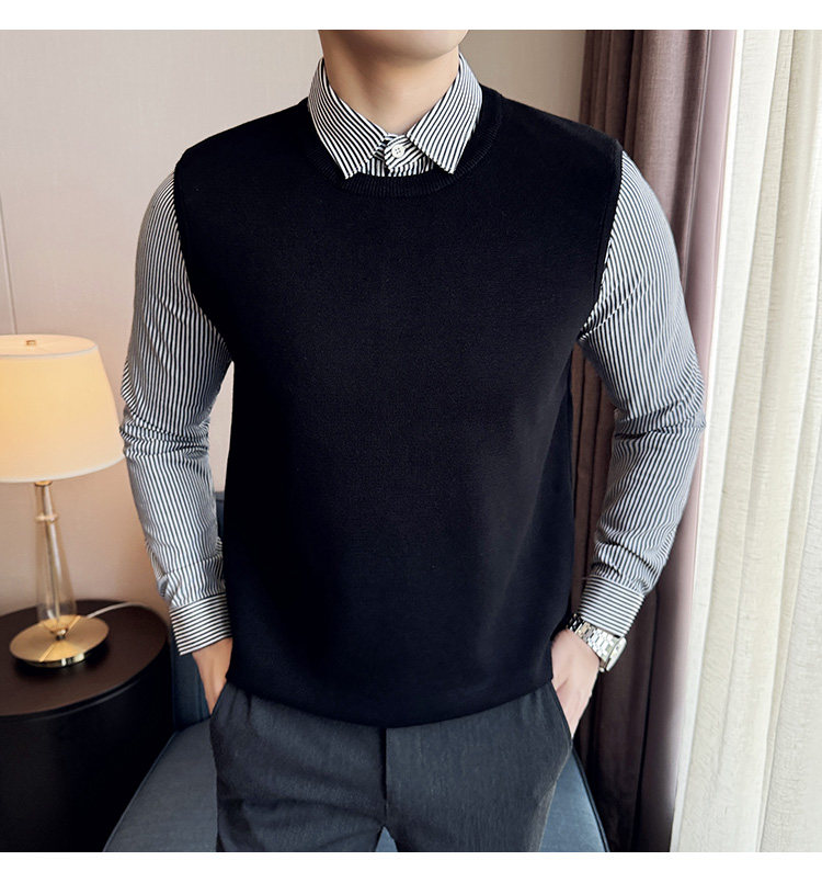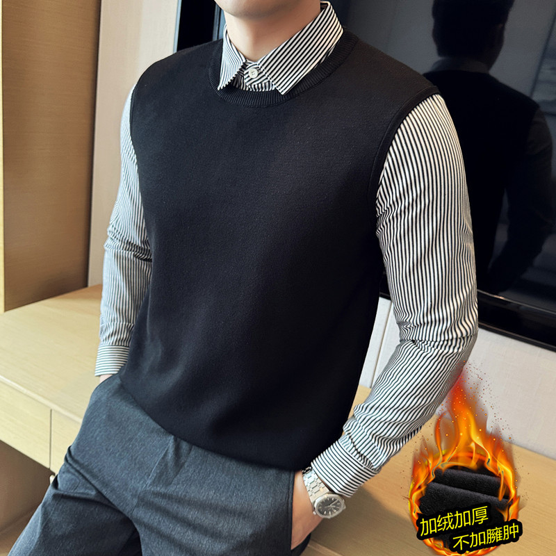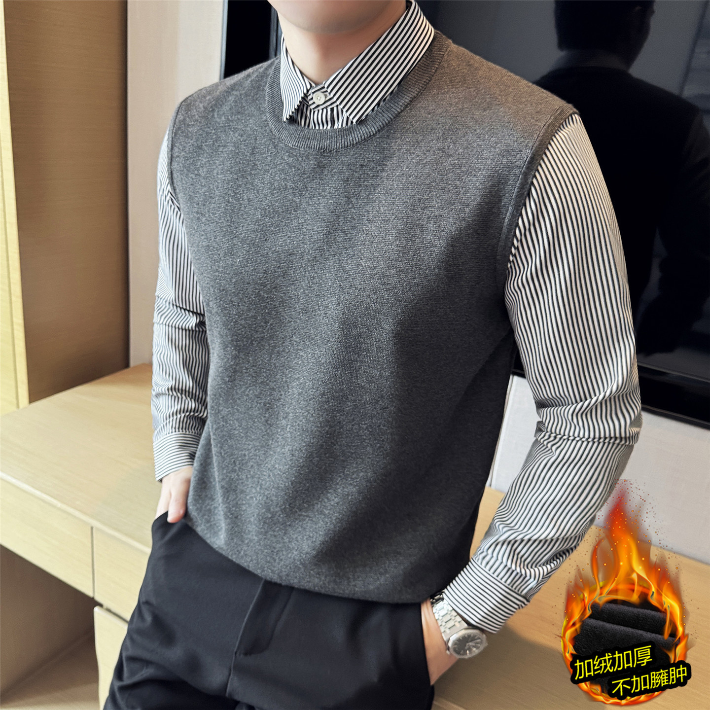 2025 가을 겨울 남성용 투피스 셔츠 스웨터 플러스 벨벳 안감 보온 고급 비즈니스 배색 이너웨어스토어 가기