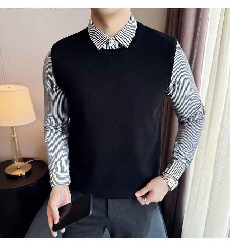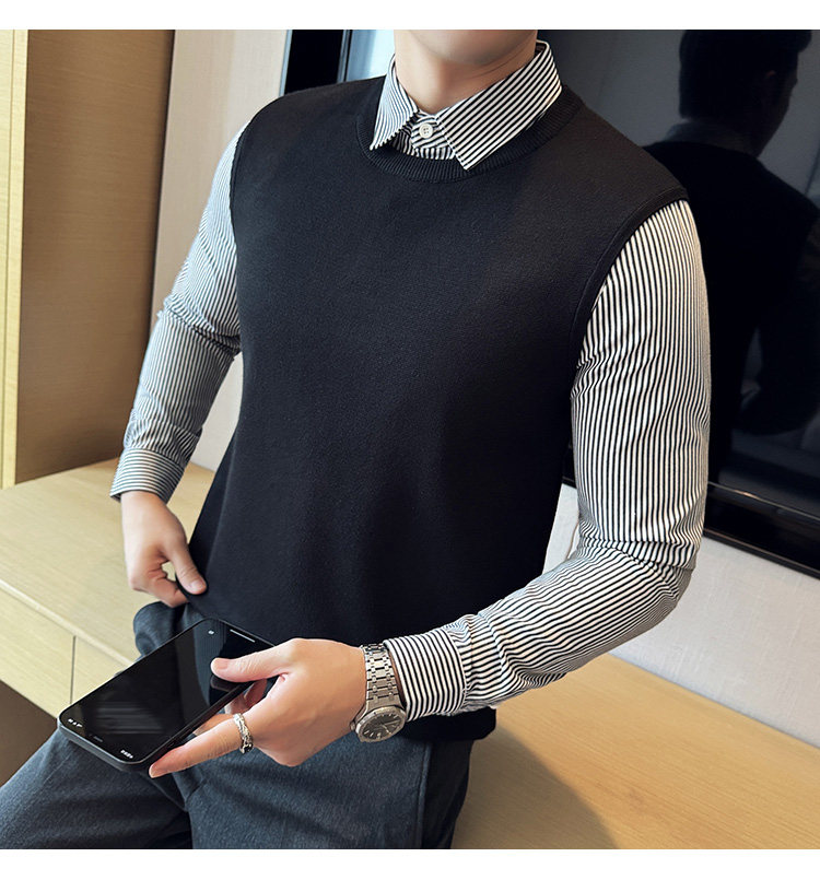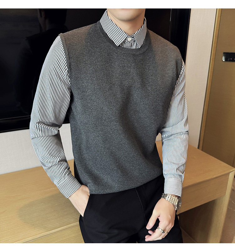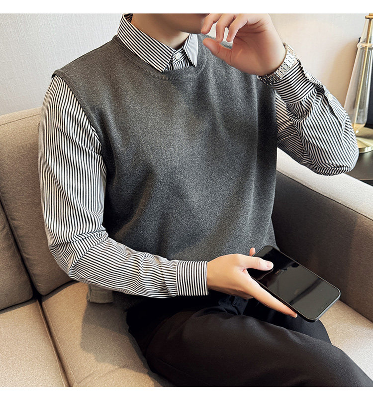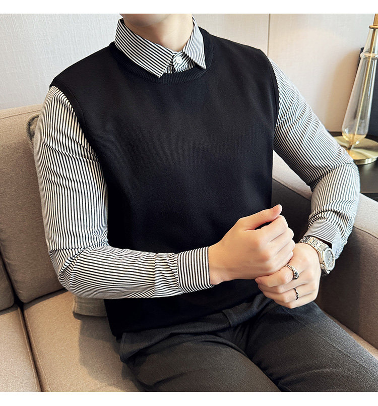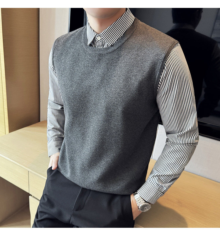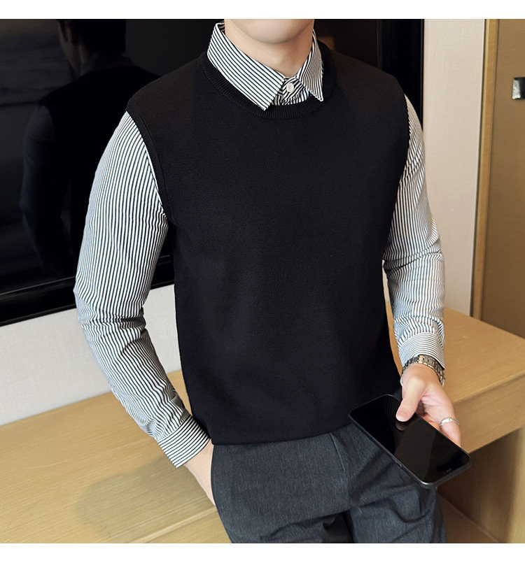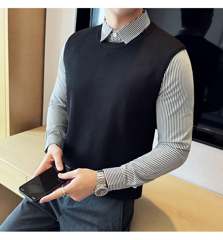 2025 가을 겨울 남성용 투피스 셔츠 스웨터 플러스 벨벳 안감 보온 고급 비즈니스 배색 이너웨어스토어 가기