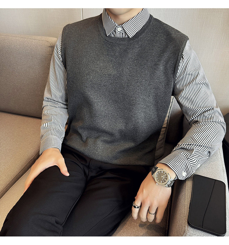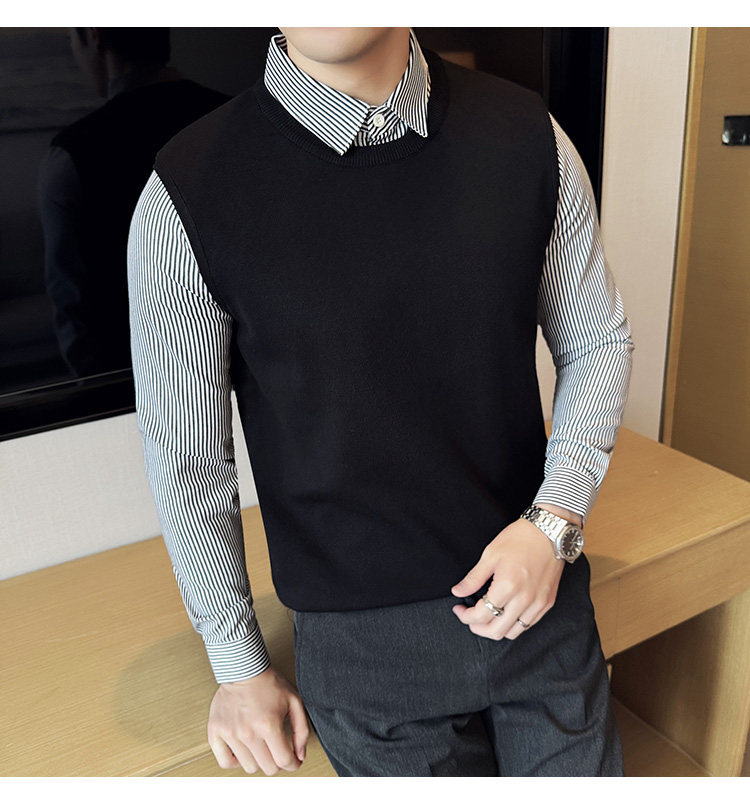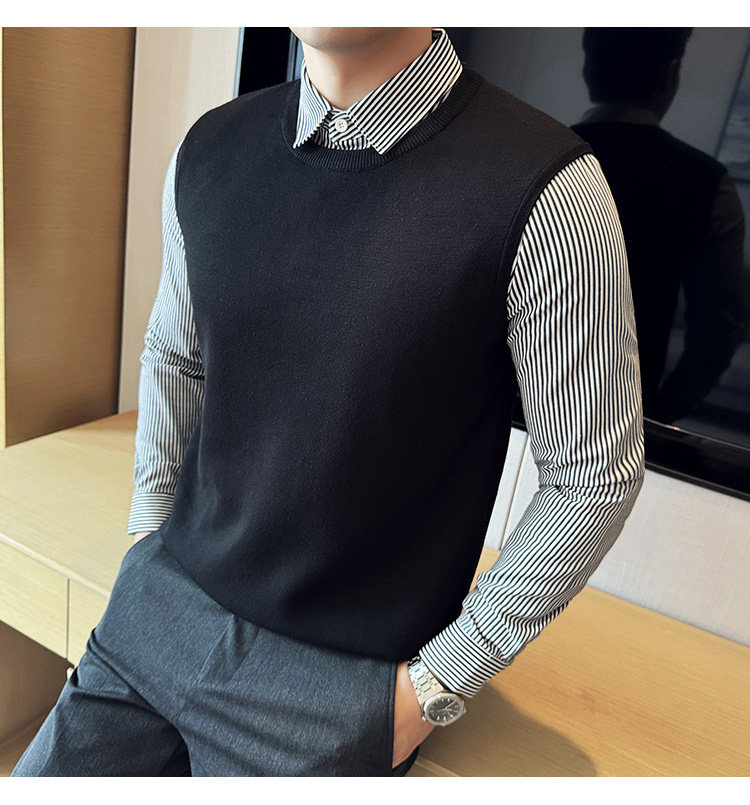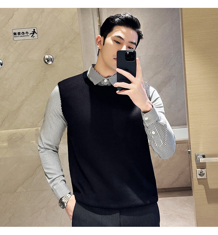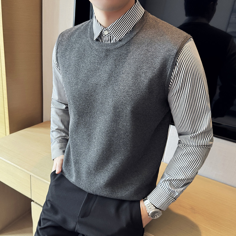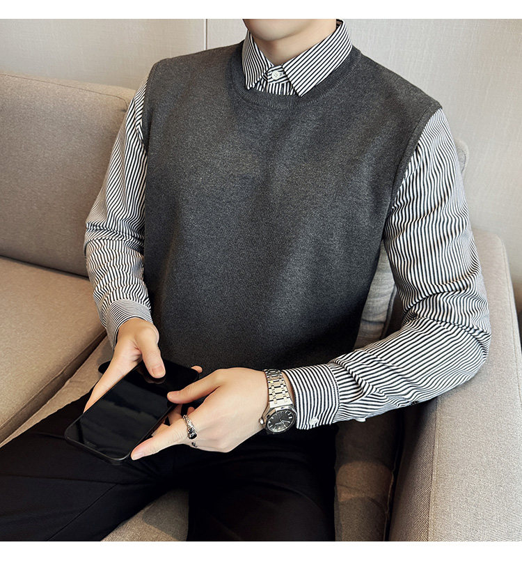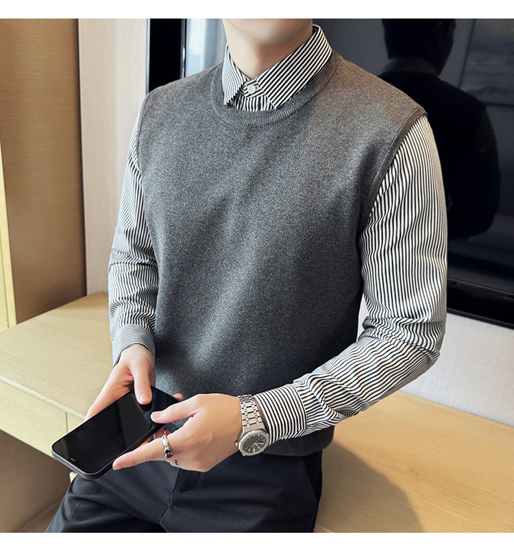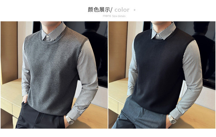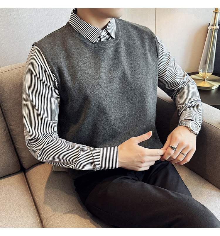 2025 가을 겨울 남성용 투피스 셔츠 스웨터 플러스 벨벳 안감 보온 고급 비즈니스 배색 이너웨어스토어 가기