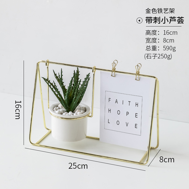 • 황금 철제 프레임 도자기 꽃병 꽃꽂이 장식품