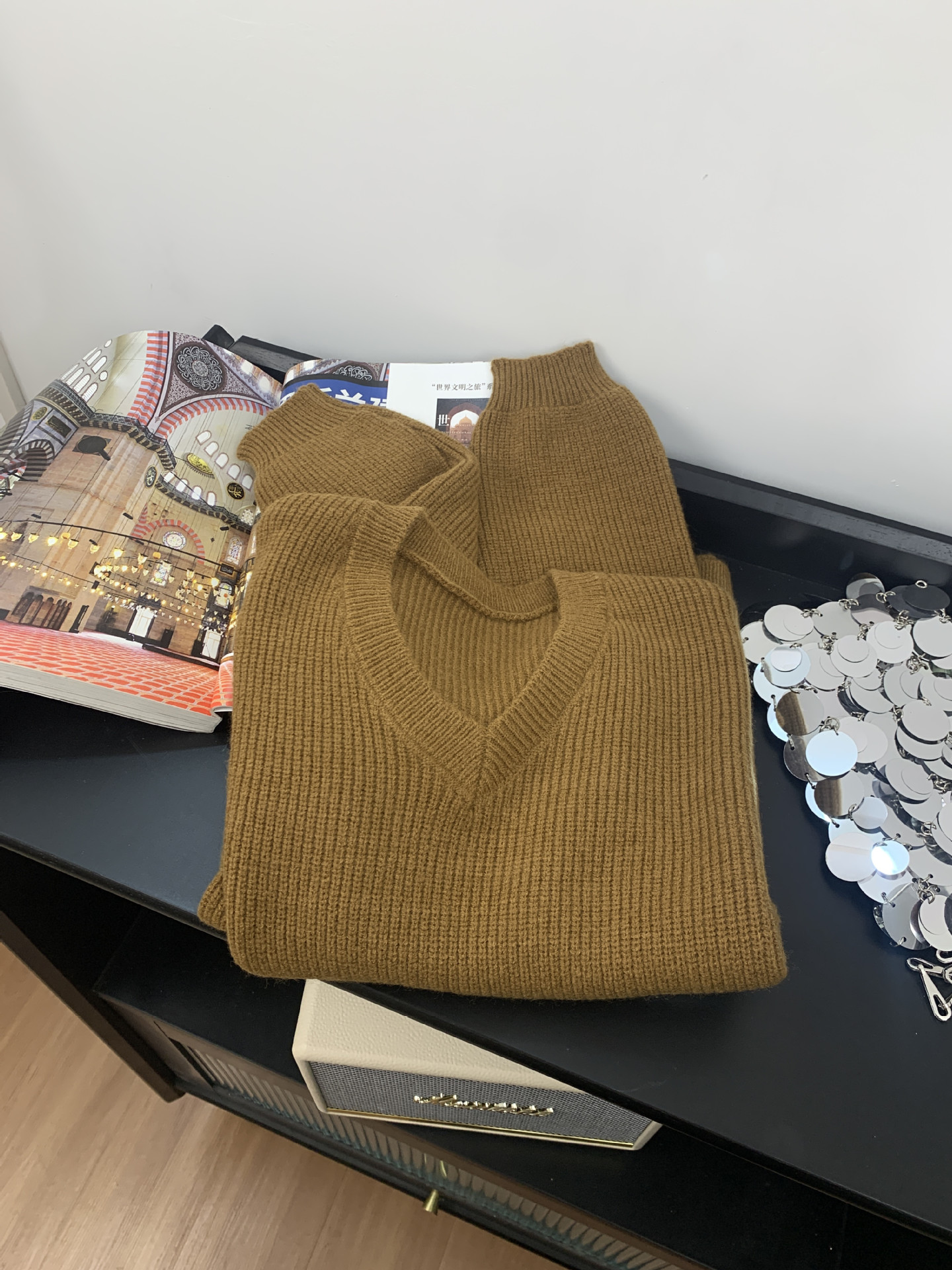 분위기의 부드럽고 우아한 V 넥 스웨터 세련된 서양식 시대 감소 슬림 스웨터 외부 착용 세련되고 아름다운 탑스토어 가기