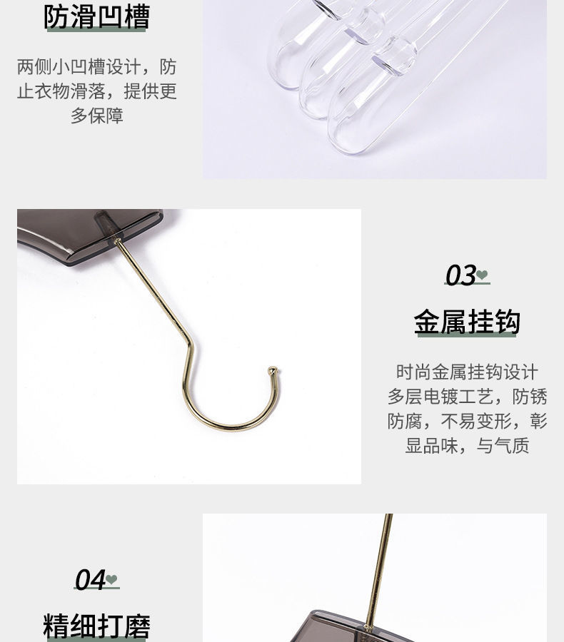 의류 매장 옷걸이 투명 크리스탈 아크릴 미끄럼 방지 여성 의류 디스플레이 의류 옷걸이 의류 지원 바지 클립 지아 타이
