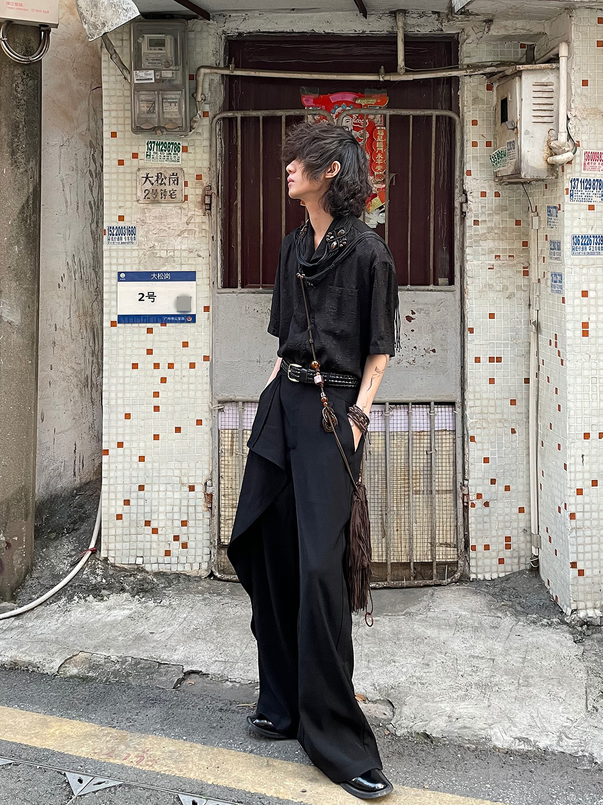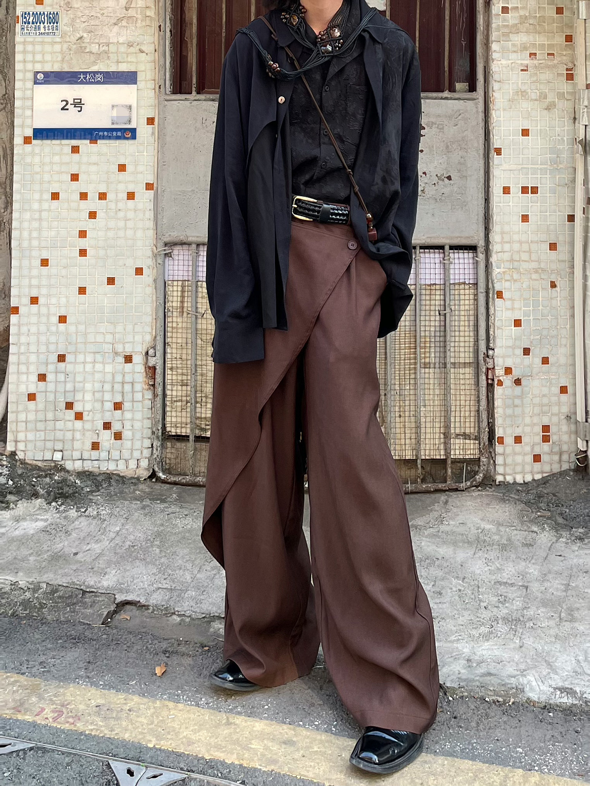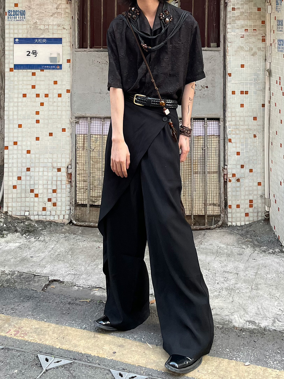 일본식 레트로 틈새 컷 조각 스티칭 디자인 게으른 금욕 바지 바지 캐주얼 바지 남성 및 여성을위한 긴 바지
