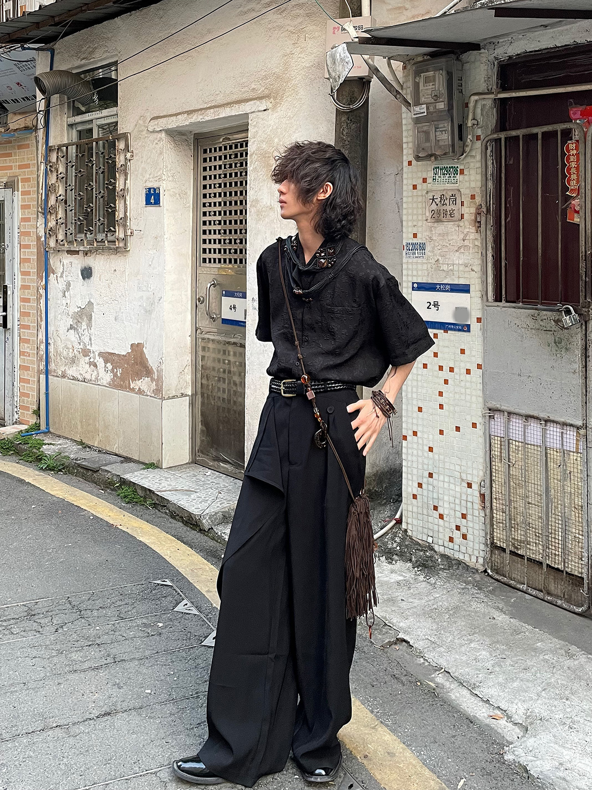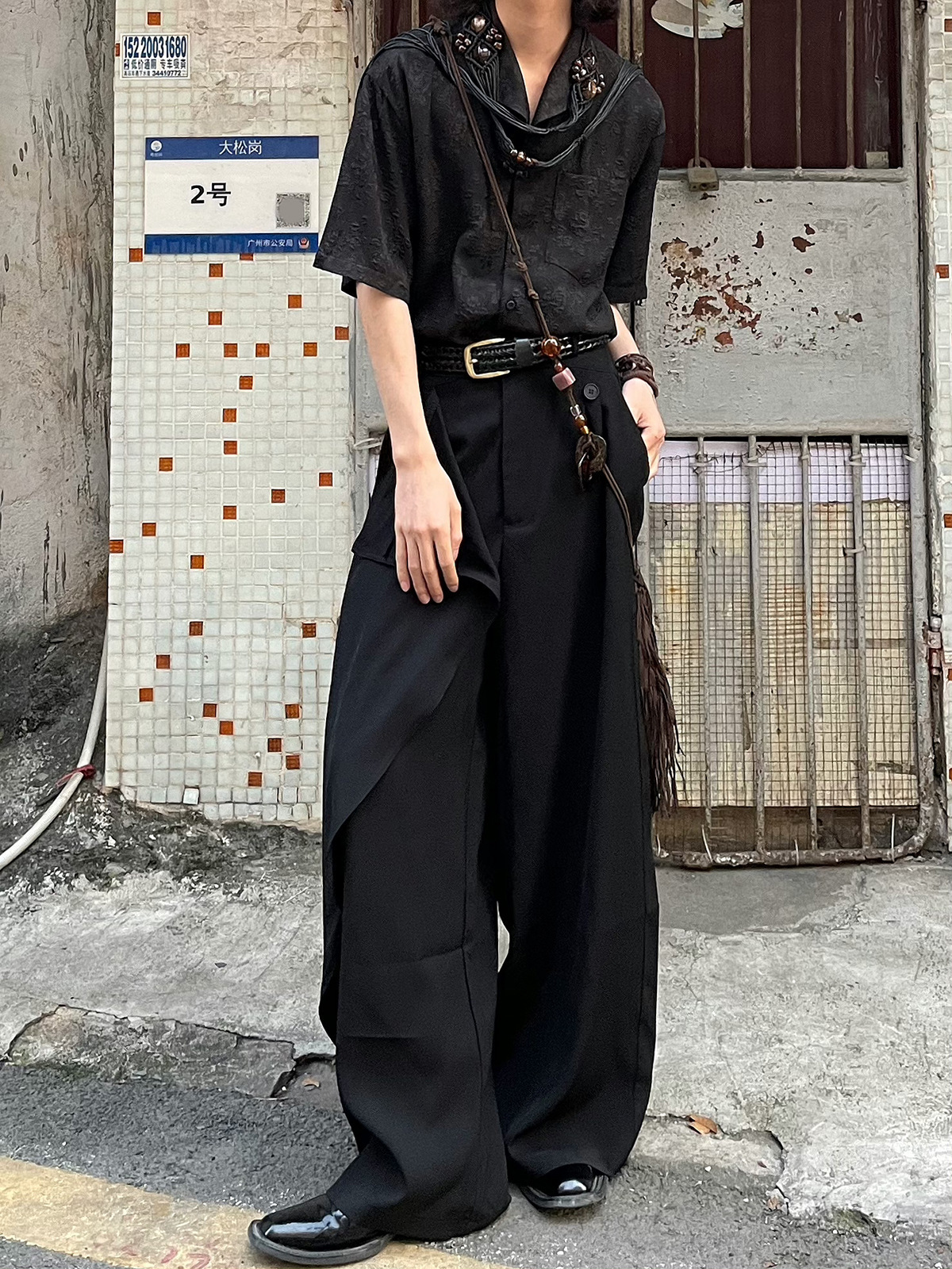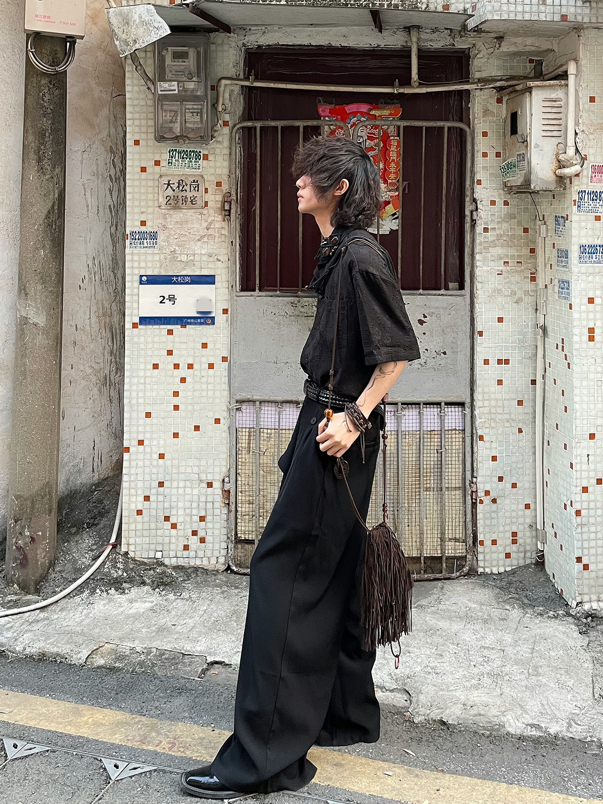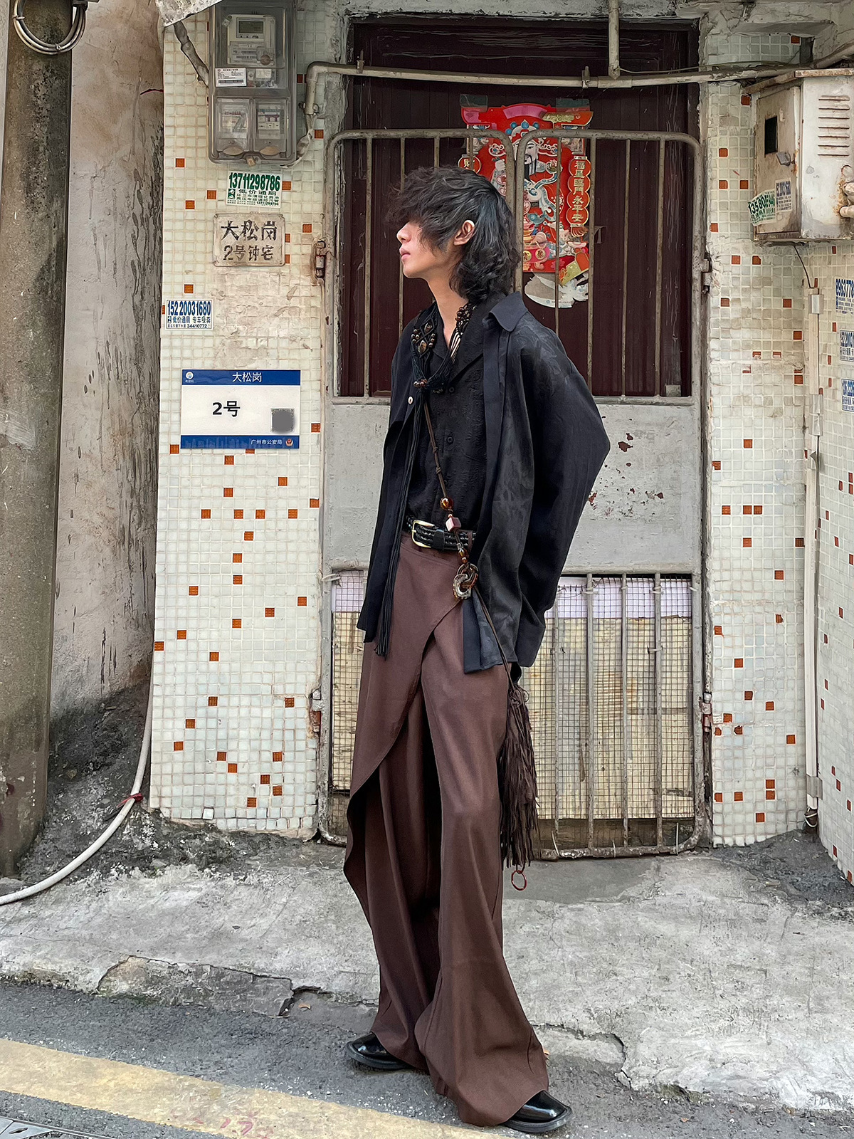 일본식 레트로 틈새 컷 조각 스티칭 디자인 게으른 금욕 바지 바지 캐주얼 바지 남성 및 여성을위한 긴 바지