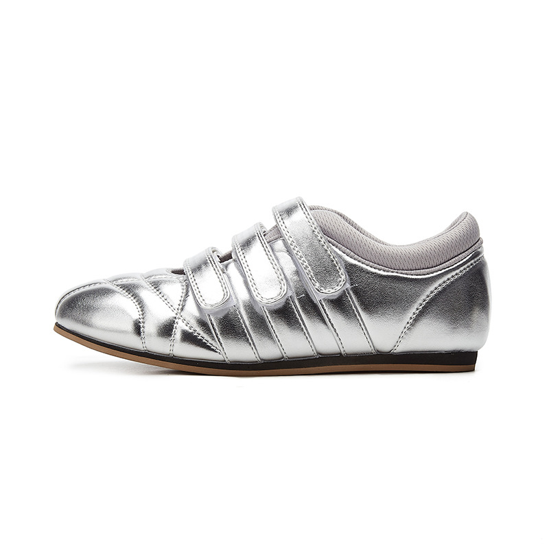 2024 플래티넘 새로운 캐주얼 올 매치 라운드 헤드 벨크로 퍼프 플랫 통기성 스포츠 실버 작은 싱글 여성용 신발