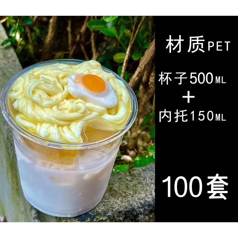 그물 붉은 창조적 인 컵라면 우유 차 컵 내부 지원 98 구경 애완 동물 일회용 높은 투과성 suo 분말 음료 컵을 설정할 수 있습니다
