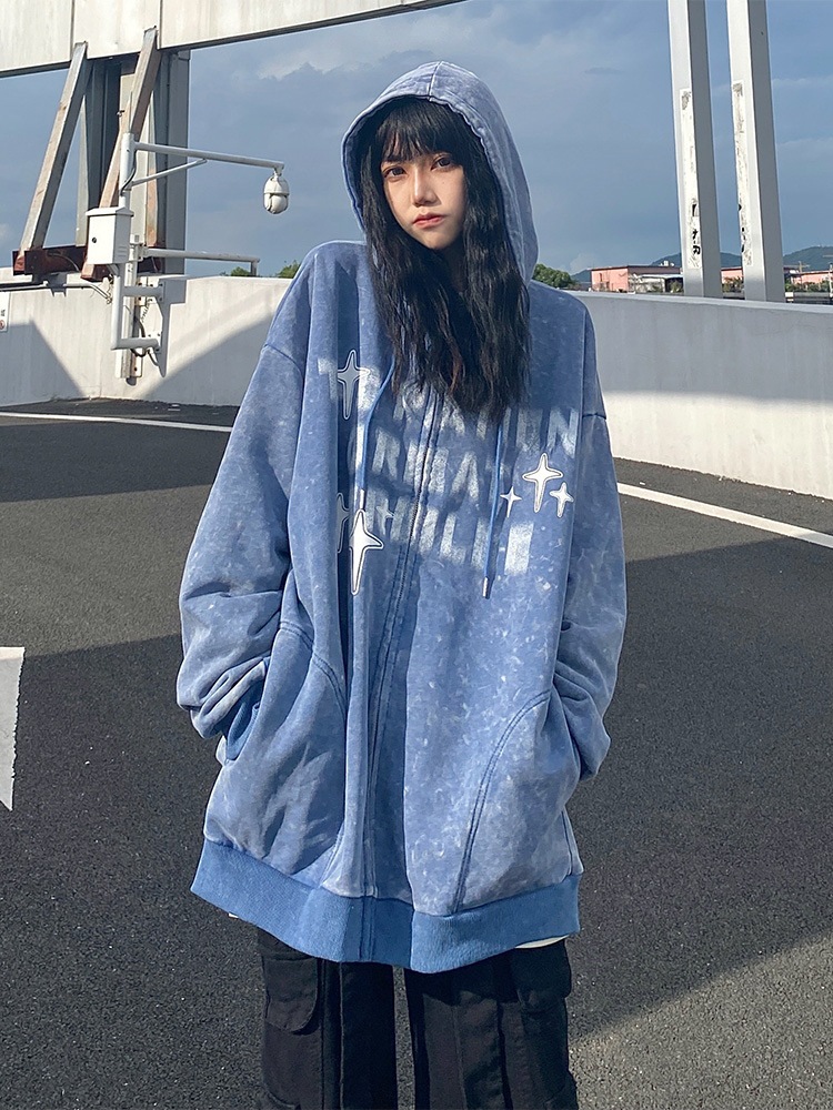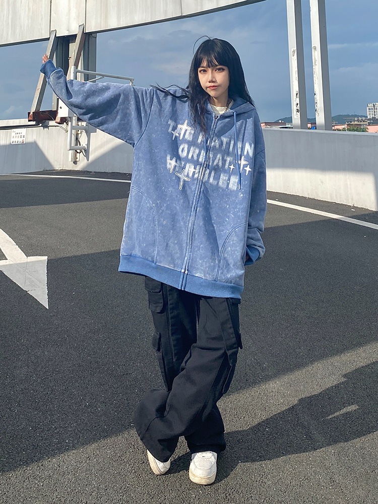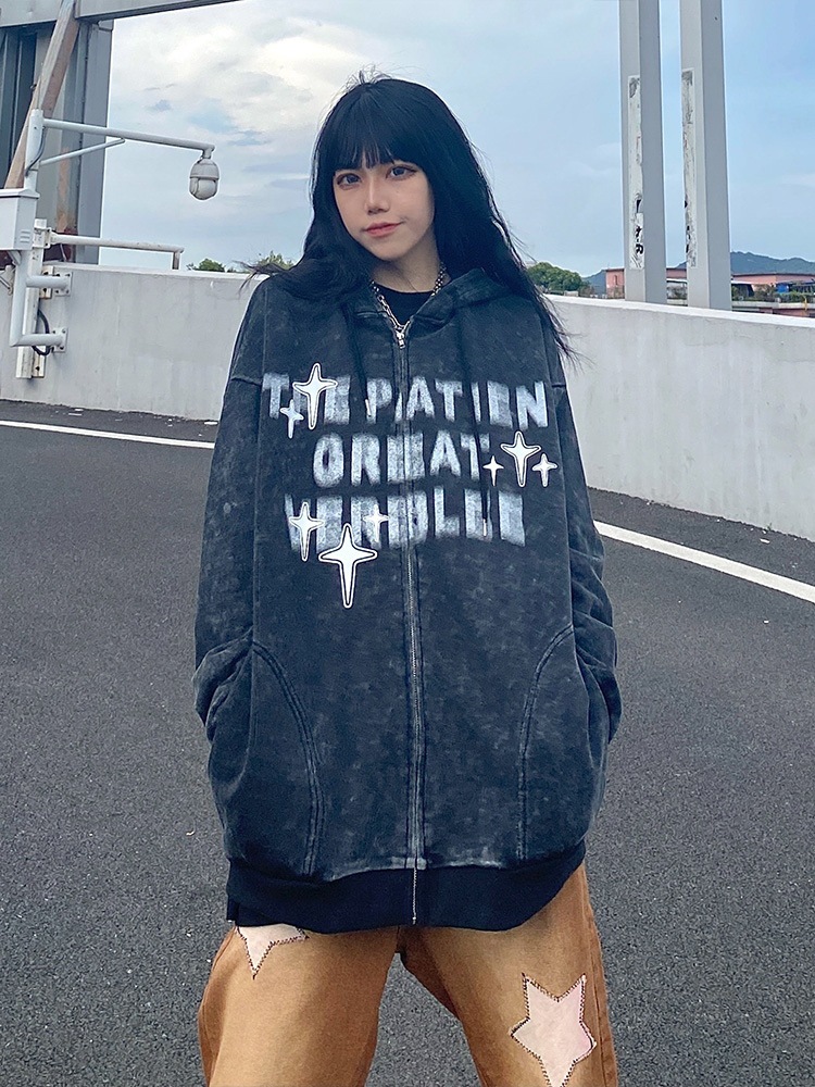 미국 복고풍 무거운 느슨한 스웨트 셔츠 여성의 봄과 가을 2024 새로운 유럽과 미국의 힙합 패션 브랜드 하이 스트리트 후드 재킷스토어 가기