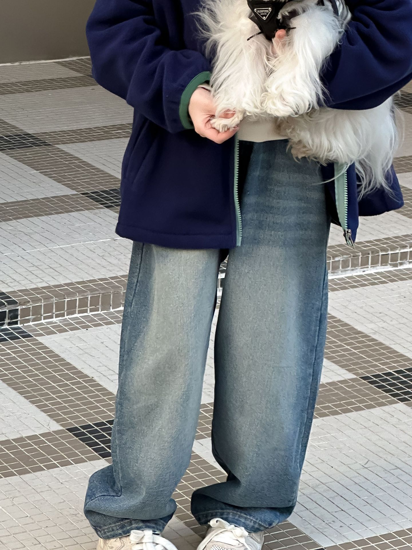 TCkids2025 가을 유니섹스 스타일 복고풍 워싱 데님 바지(남학생 및 여학생용)스토어 가기