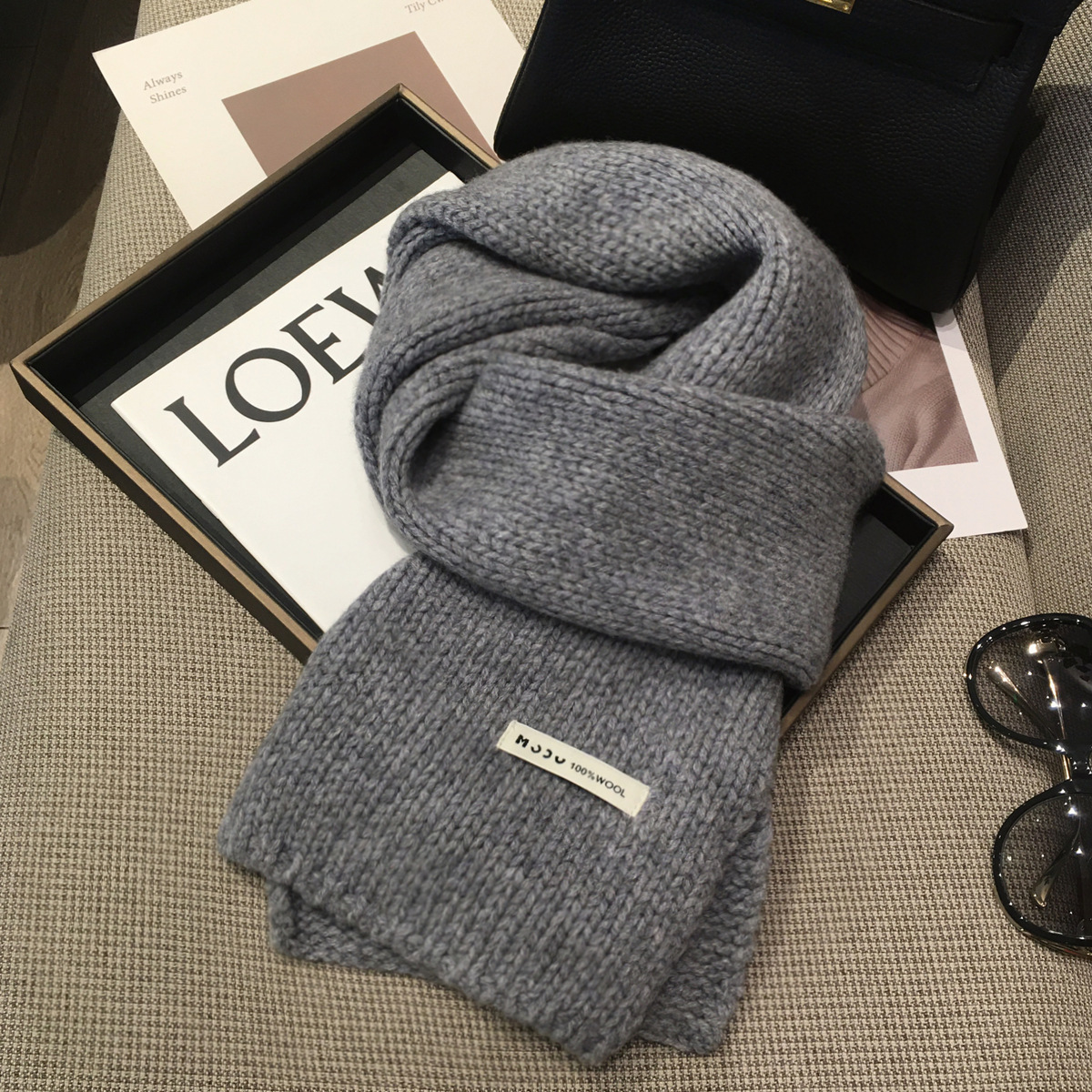새로운 솔리드 컬러 두꺼운 바늘 호주 퓨어 코튼 울 100 캐시미어 스카프 모든 경기 남녀 겨울 따뜻한 니트 스카프