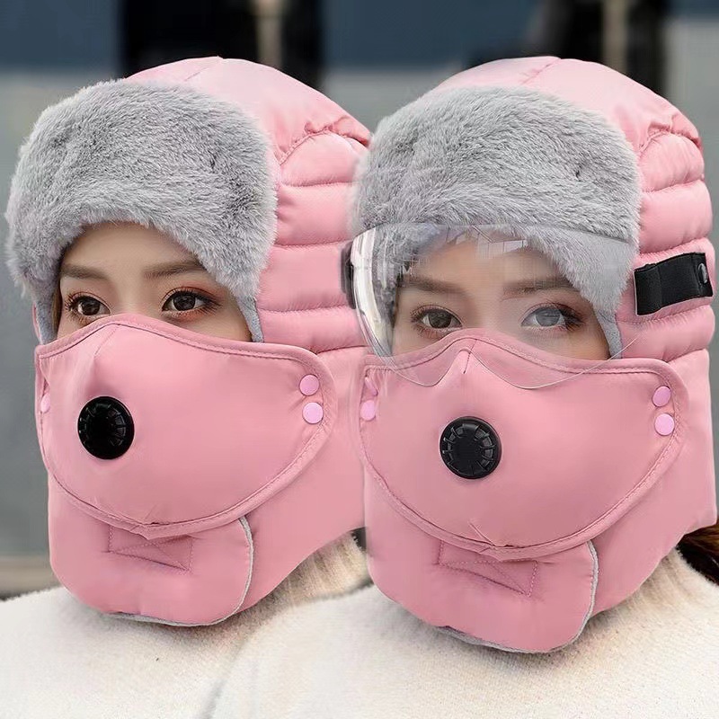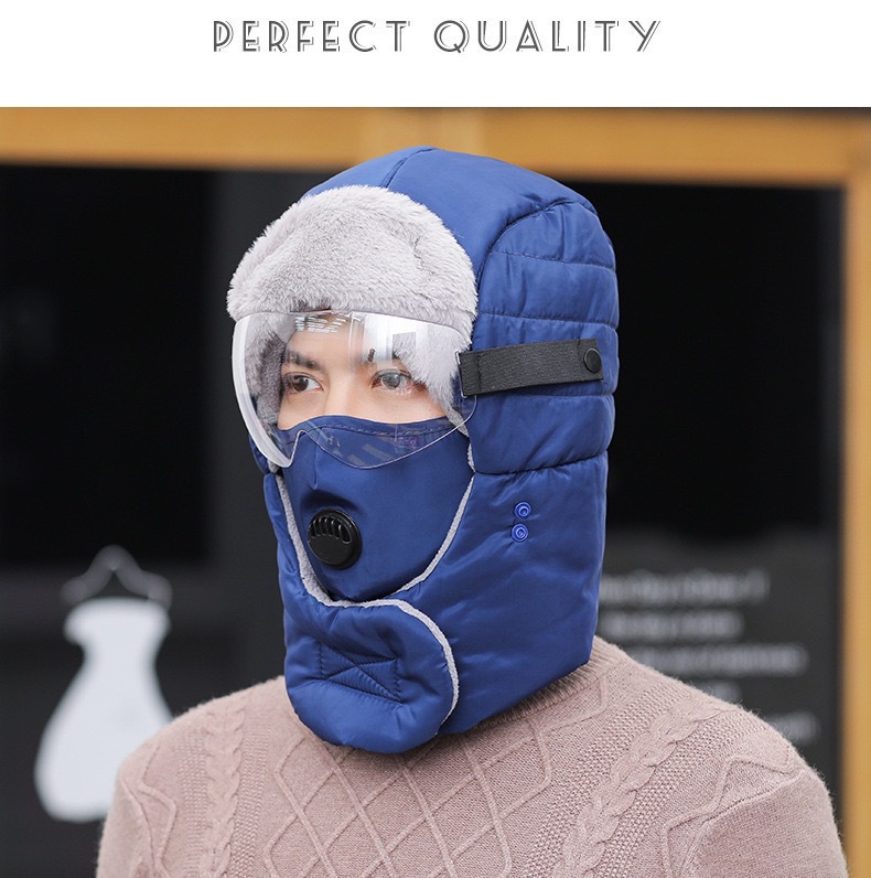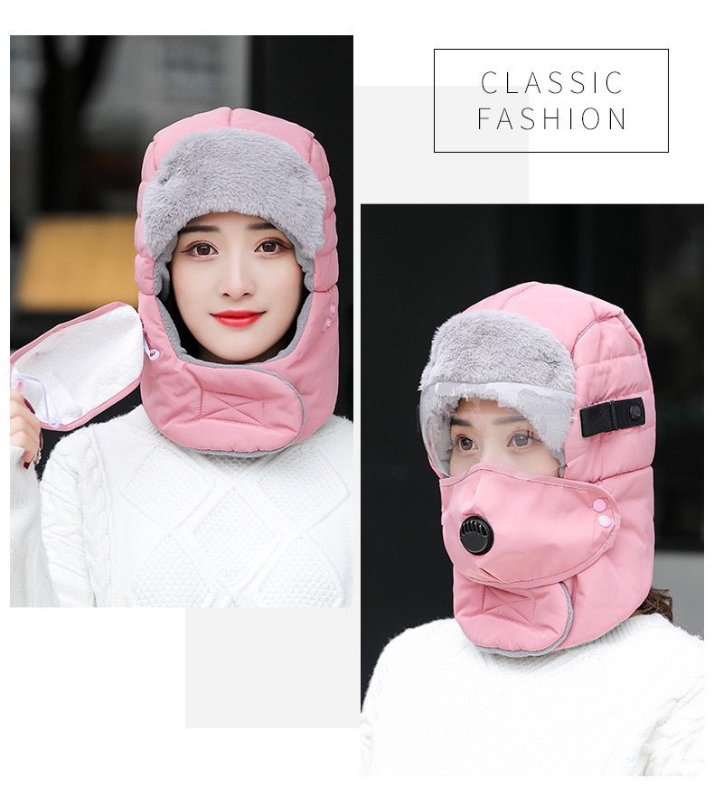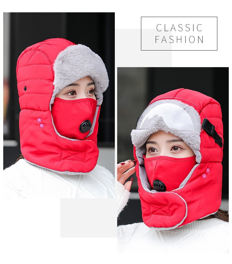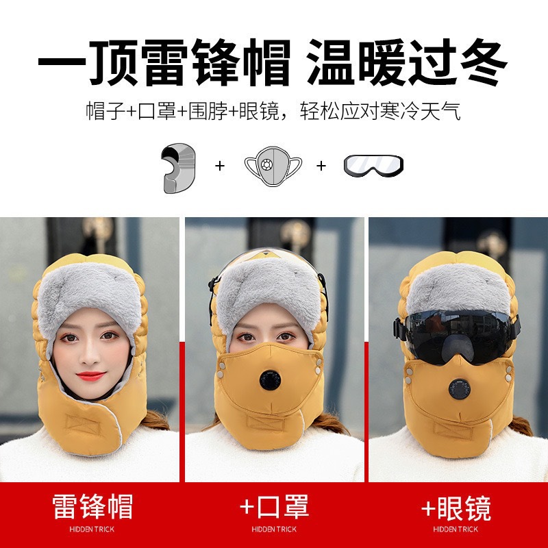 겨울 야외 방풍 모자, 귀 보호 및 얼굴 보호, 남성용 및 여성용 레이펑 모자, 고글, 두꺼운 사이클링 방한 및 따뜻한 모자