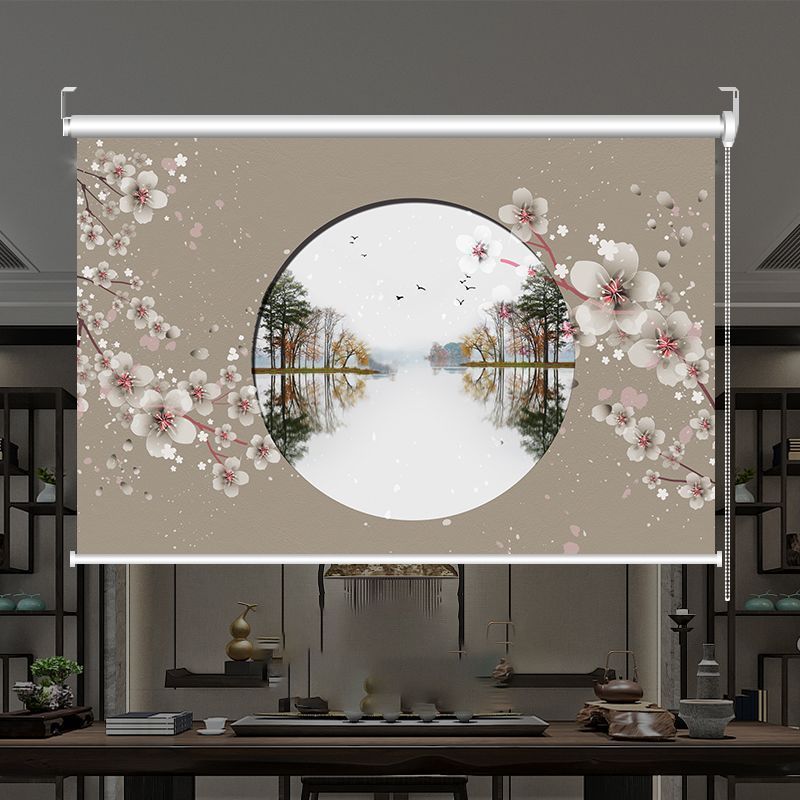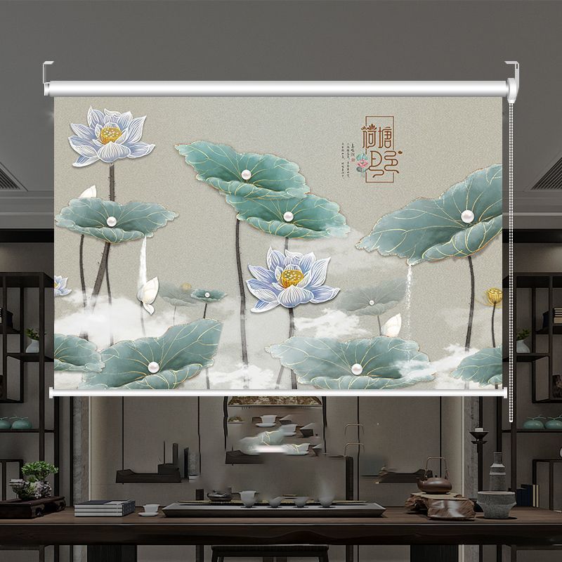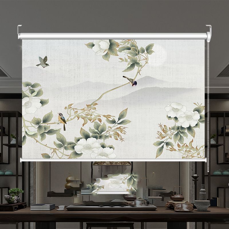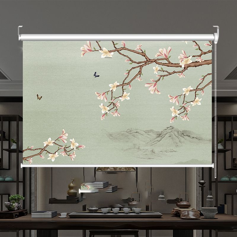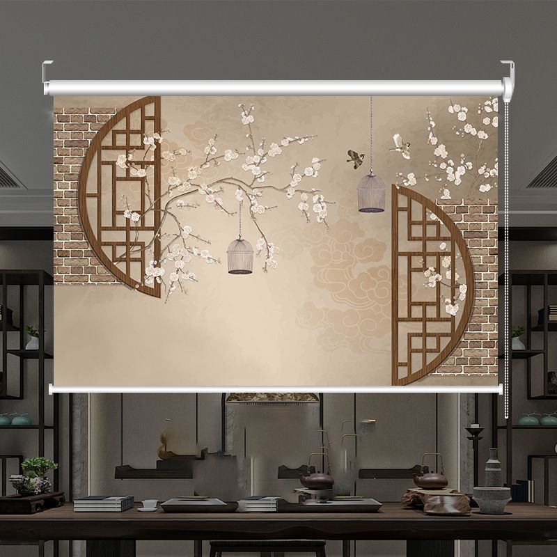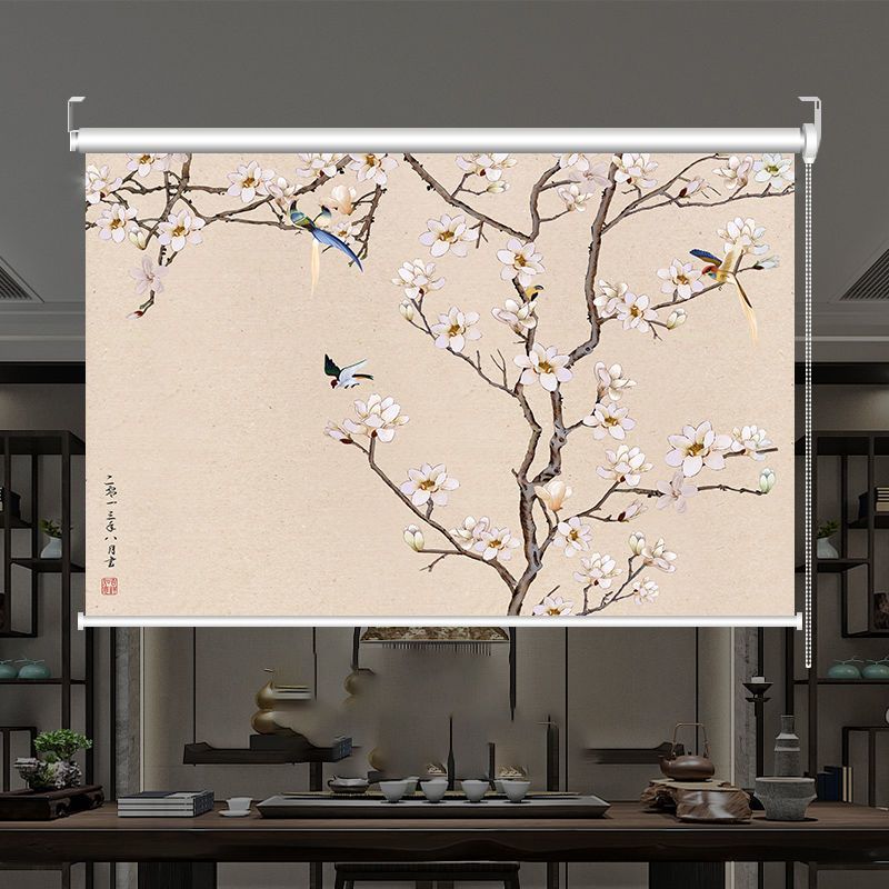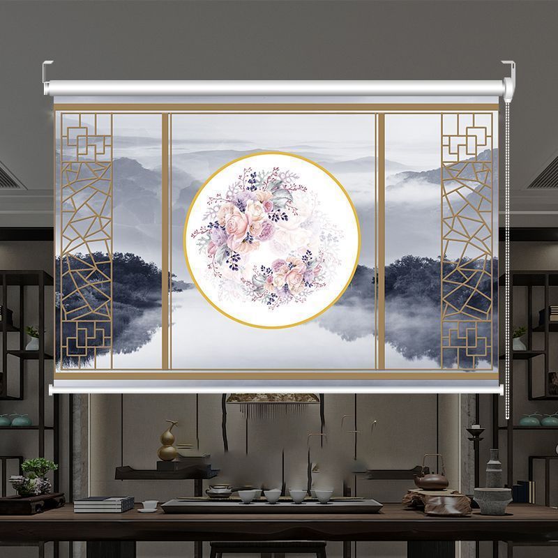 새로운 중국 커튼 빈티지 사무실 스터디 티 룸 펀치 리프팅 음영 열 음영 롤러 셔터 거실