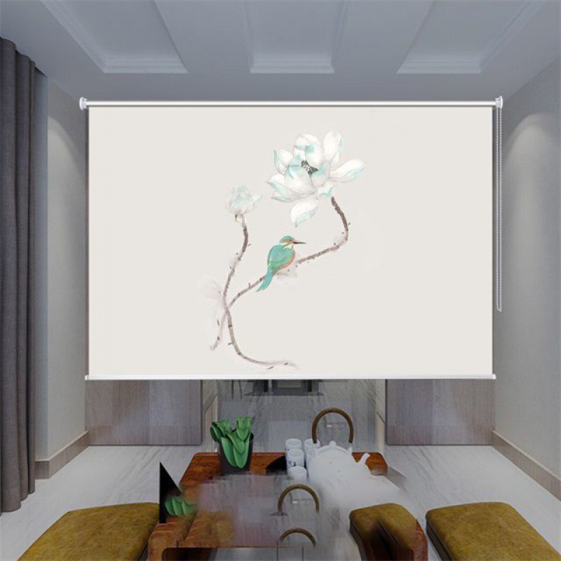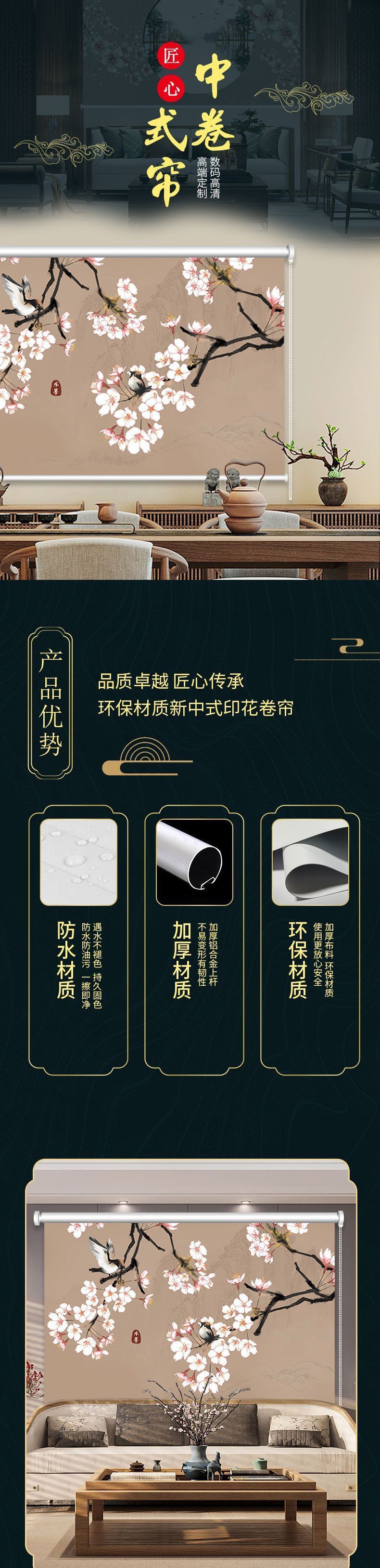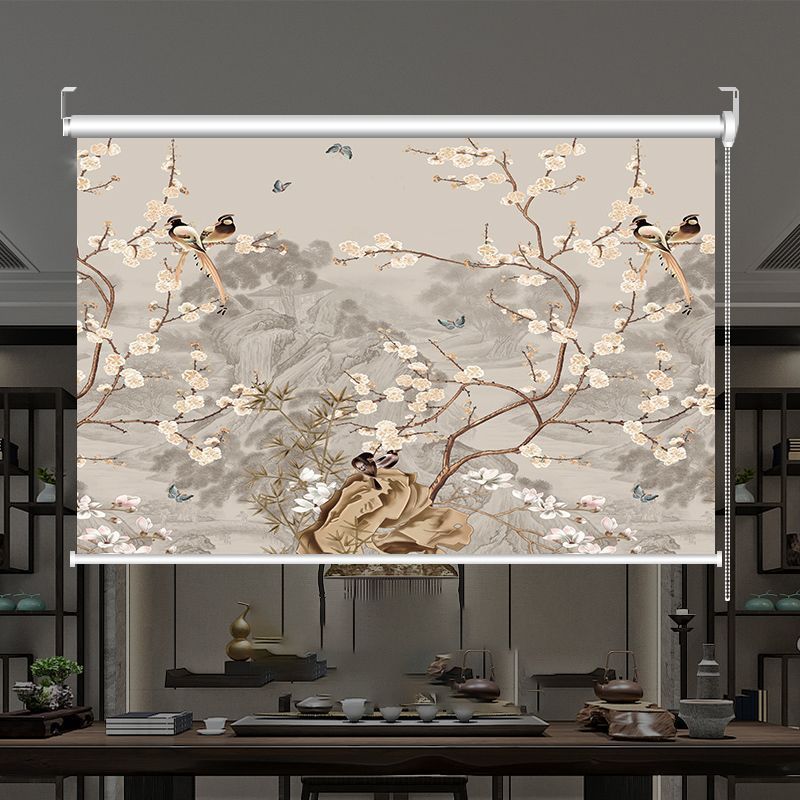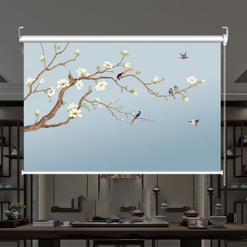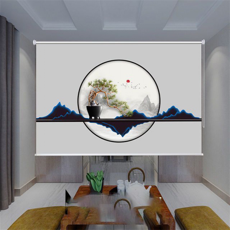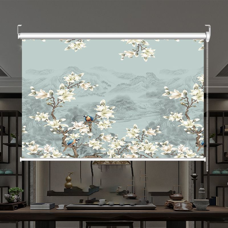 새로운 중국 커튼 빈티지 사무실 스터디 티 룸 펀치 리프팅 음영 열 음영 롤러 셔터 거실