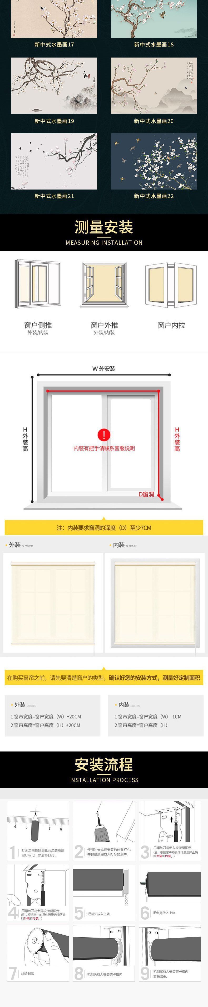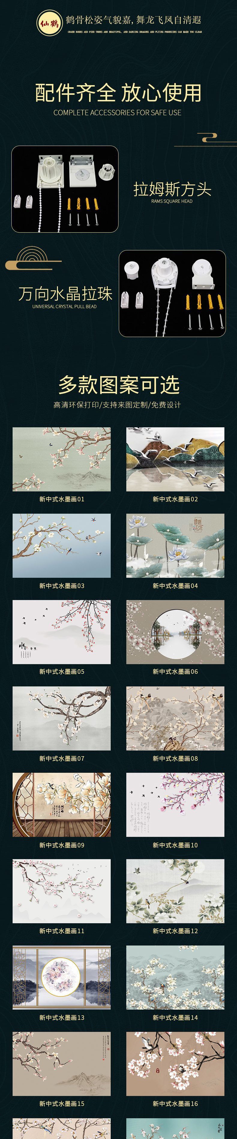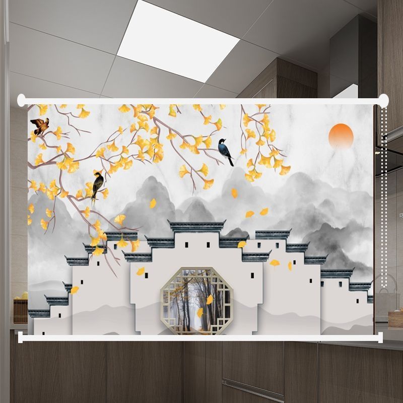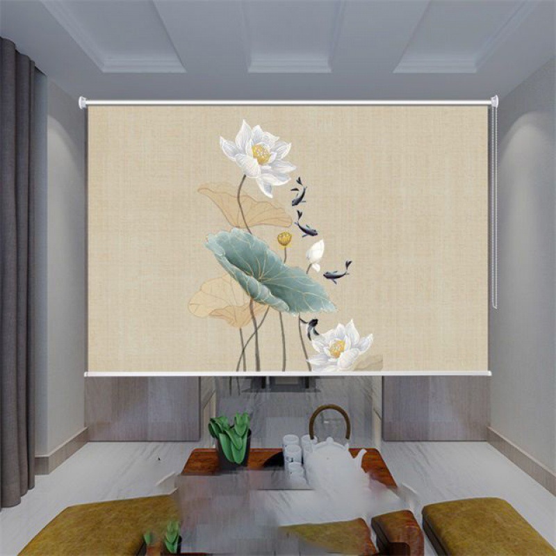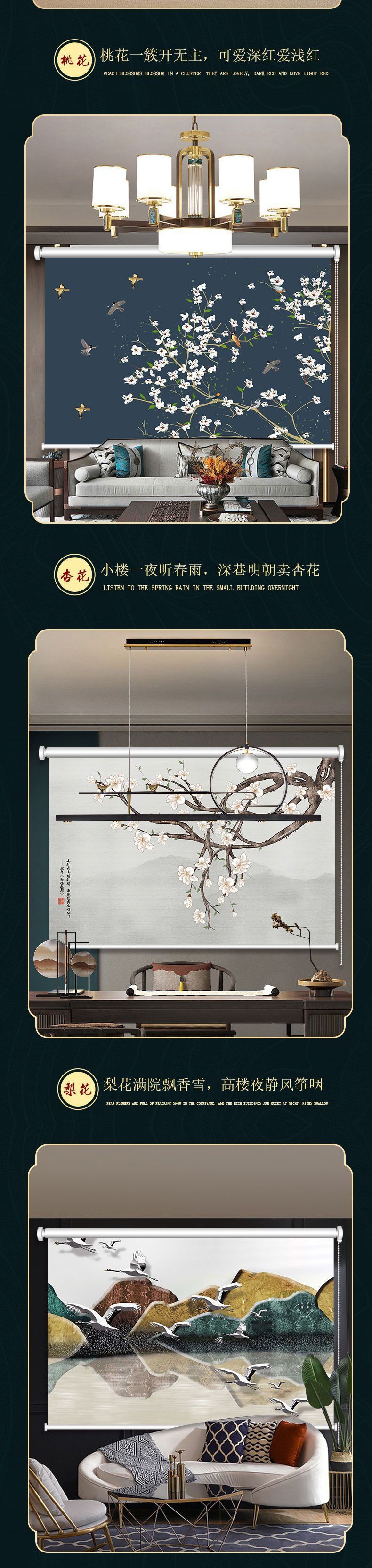 새로운 중국 커튼 빈티지 사무실 스터디 티 룸 펀치 리프팅 음영 열 음영 롤러 셔터 거실