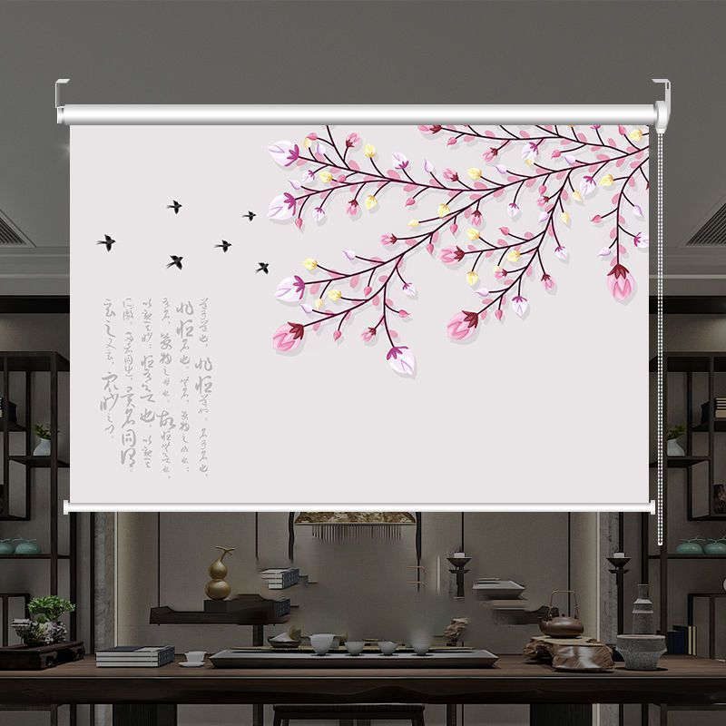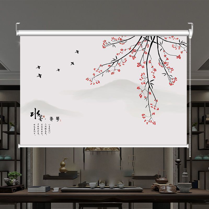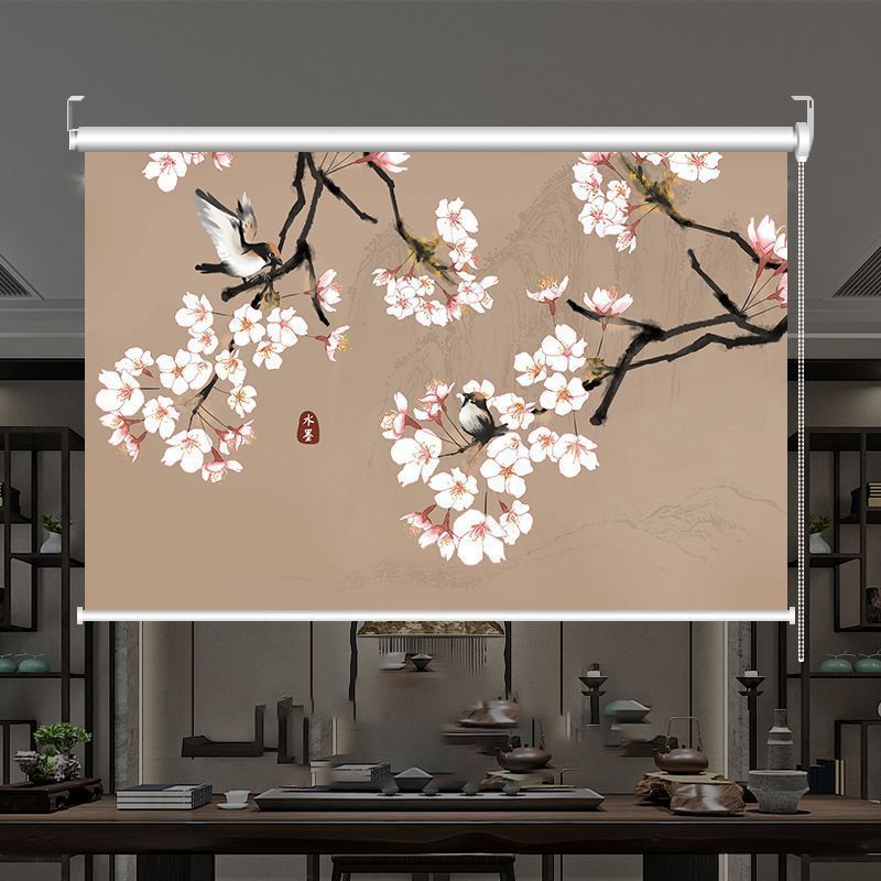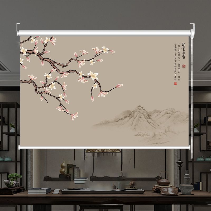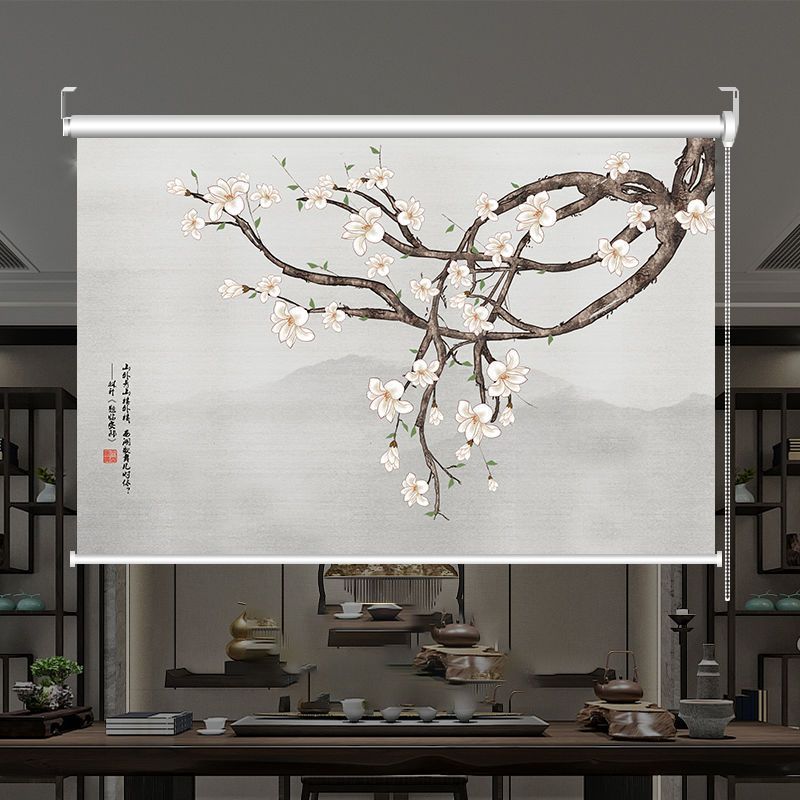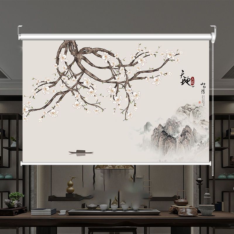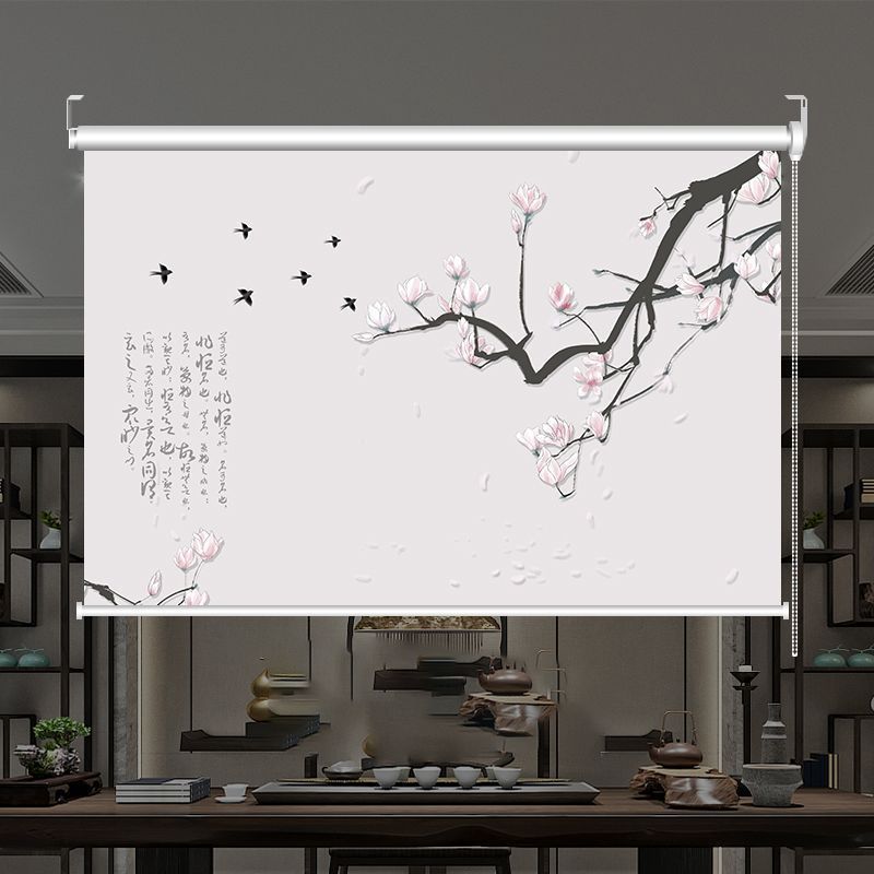 새로운 중국 커튼 빈티지 사무실 스터디 티 룸 펀치 리프팅 음영 열 음영 롤러 셔터 거실스토어 가기