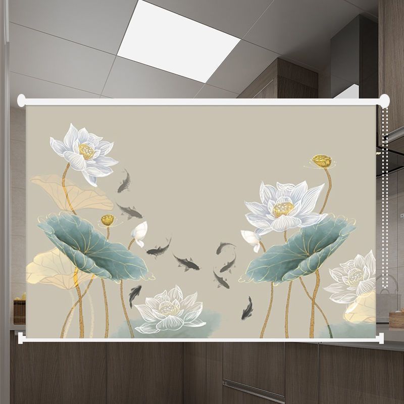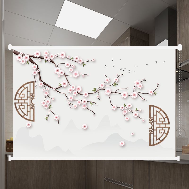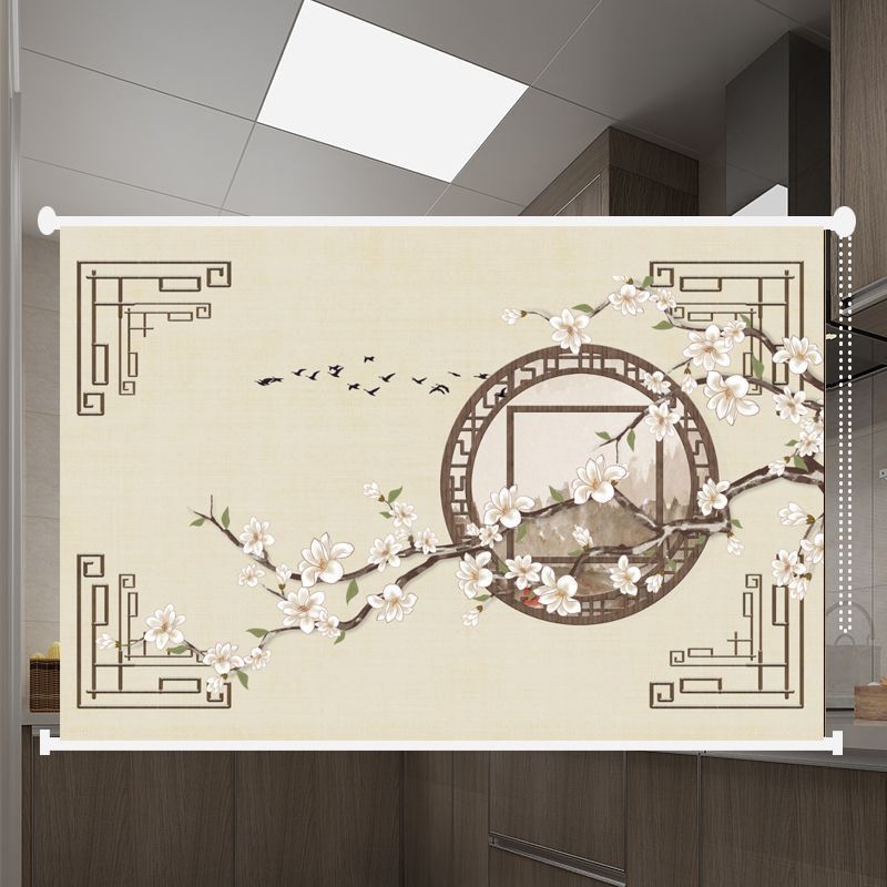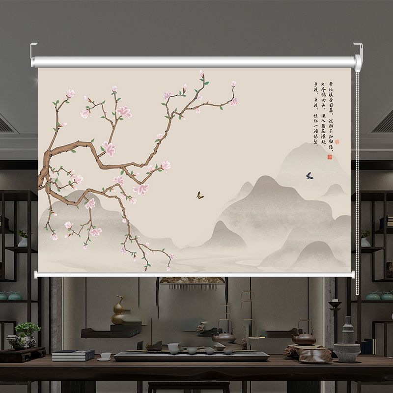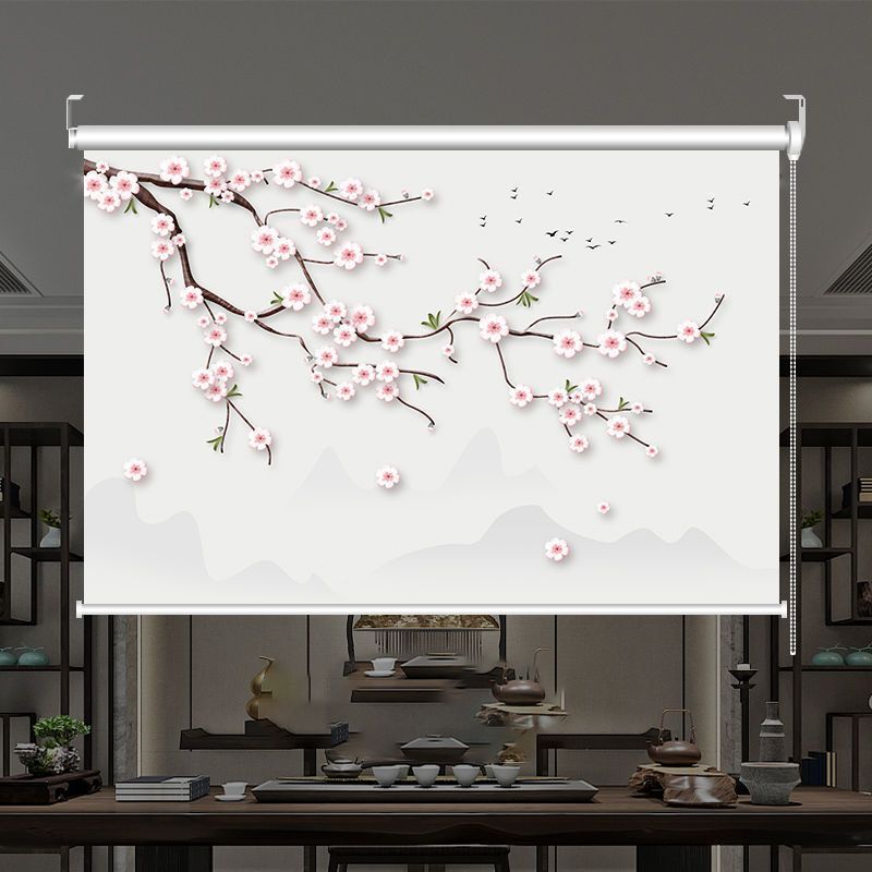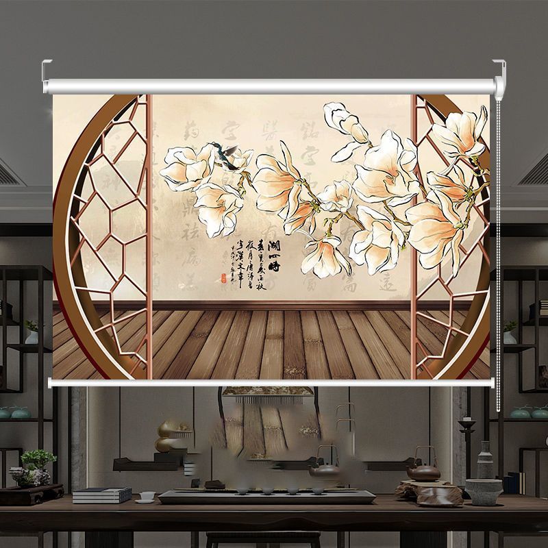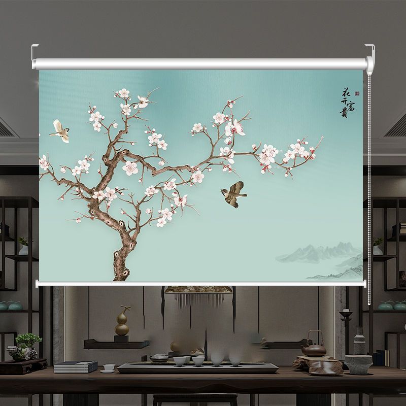 새로운 중국 커튼 빈티지 사무실 스터디 티 룸 펀치 리프팅 음영 열 음영 롤러 셔터 거실스토어 가기