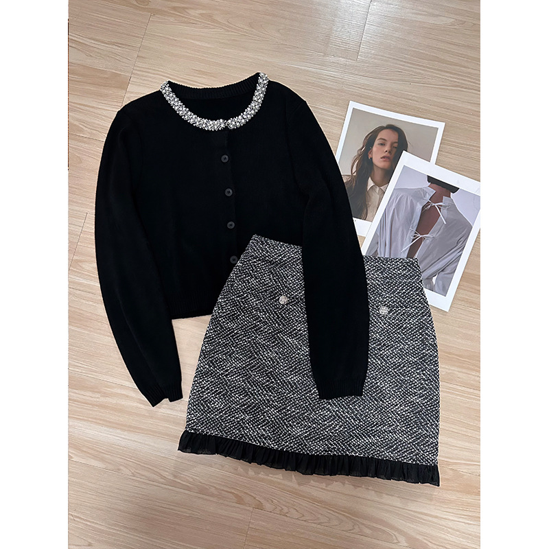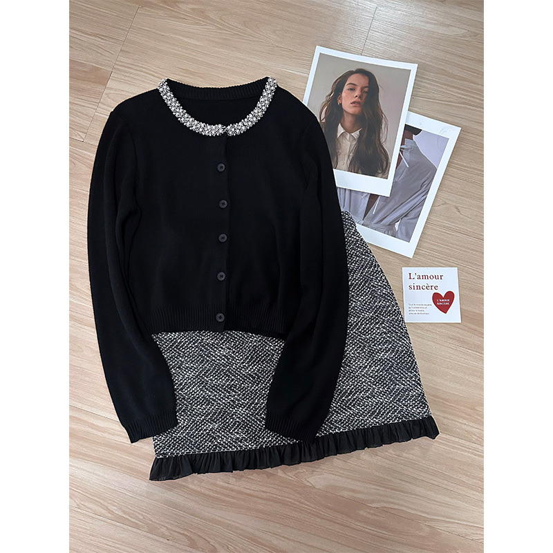 Qianyu 2024 초가을 새로운 슬림 핏 슬리밍 세련된 탑 하이 엔드 센스 다이아몬드가 박힌 싱글 브레스트 니트 스웨터