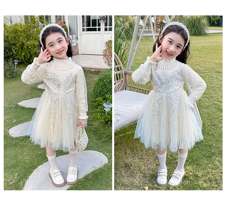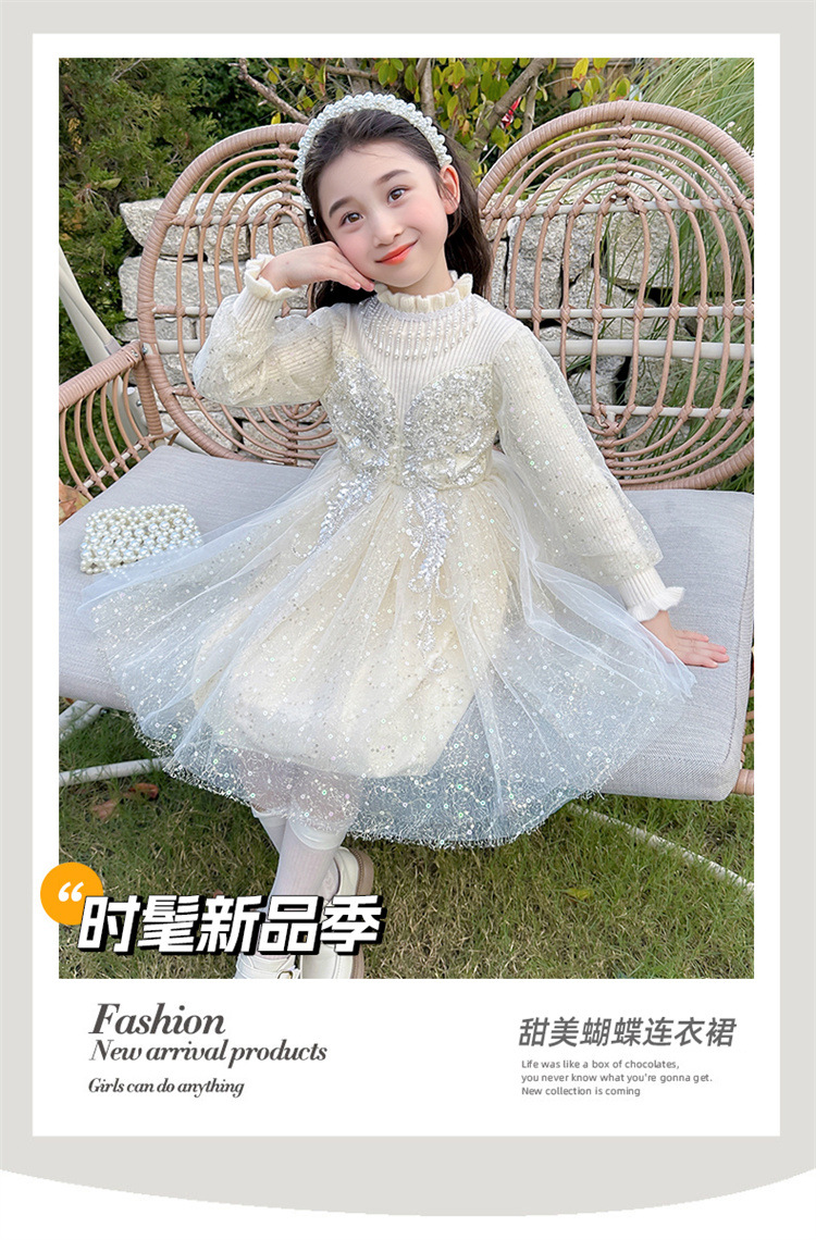 소녀 원피스 2024 새로운 패션 어린 소녀 나비 산업 스웨터 거즈 스커트 어린이 세트스토어 가기
