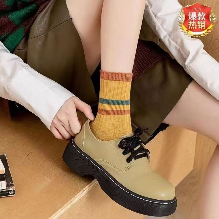 양말 여자 가을 겨울 새 여자 중간 길이 스타킹 한국식 학술 스타일 인스타그램 패셔너블 스타킹 스트라이프 올매치 스타킹스토어 가기