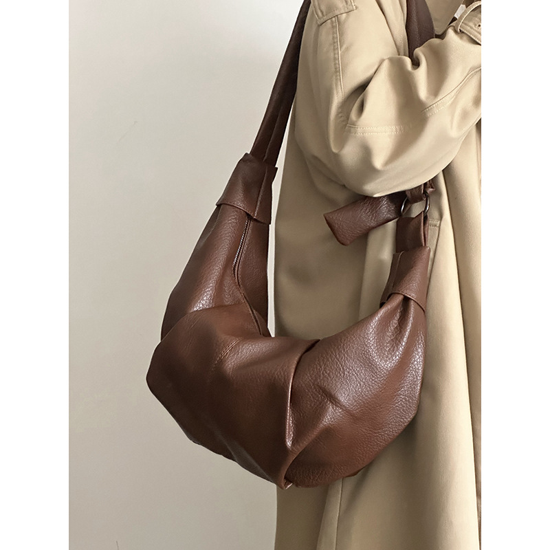 한국식 레트로 부드러운 가죽 주름 만두 백 게으른 스타일 캐주얼 올 매치 통근 어깨 크로스 백 오드 코너 백