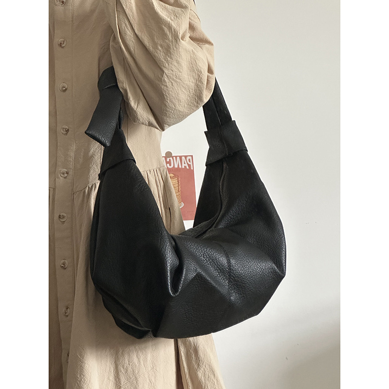 한국식 레트로 부드러운 가죽 주름 만두 백 게으른 스타일 캐주얼 올 매치 통근 어깨 크로스 백 오드 코너 백스토어 가기