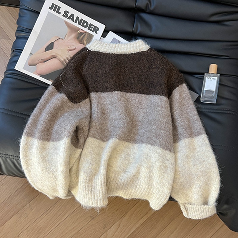 콘트라스트 컬러 스트라이프 스웨터 코트 여성의 가을과 겨울 레트로 게으른 스타일 디자인 올 매치 니트