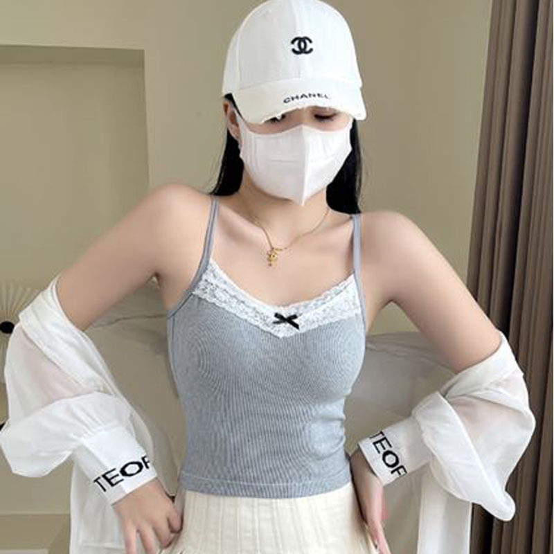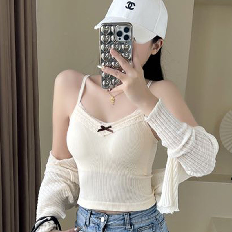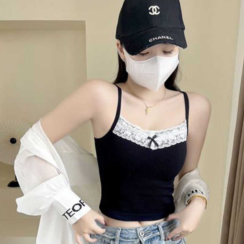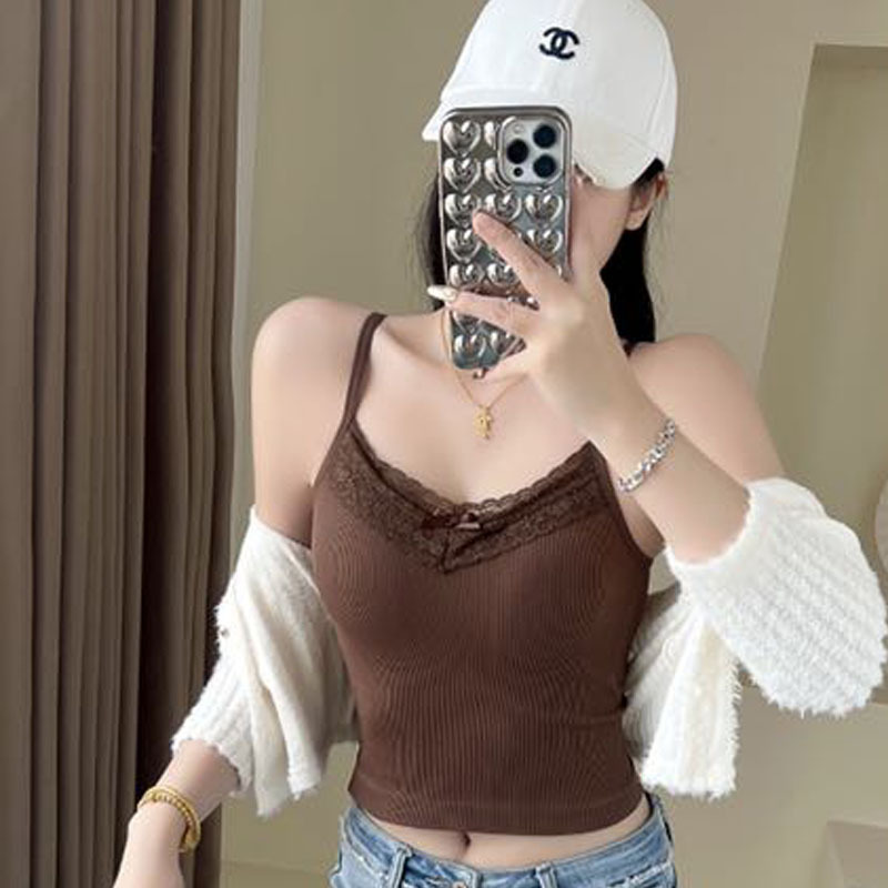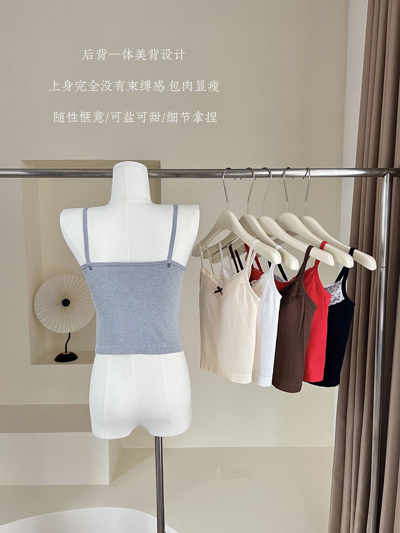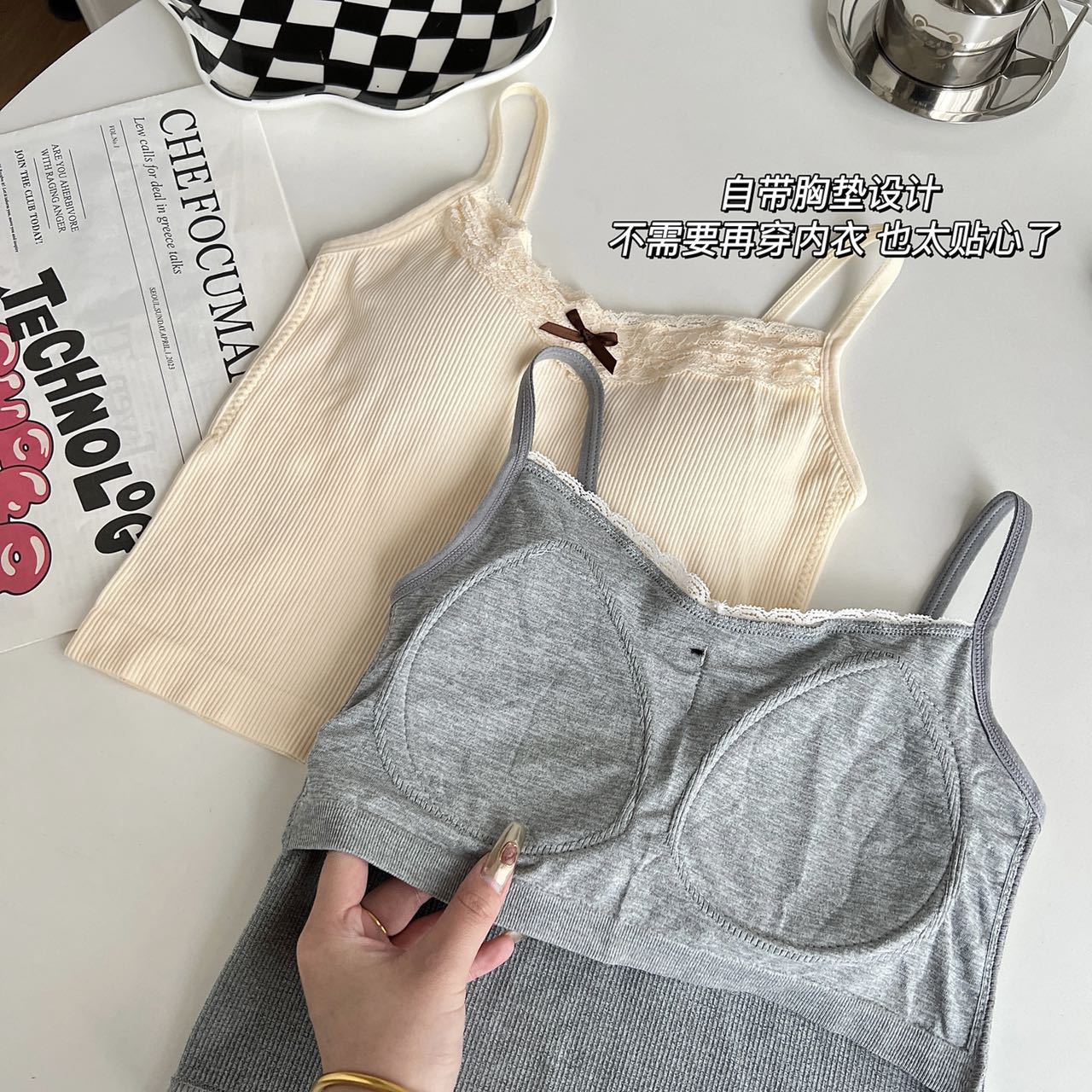 향신료 소녀 레이스 순수한 욕망 카미솔 여름 조끼 가슴 패드 내면베이스 슬림 핏 아름다운 등 통합 고정 컵 매직 구멍스토어 가기