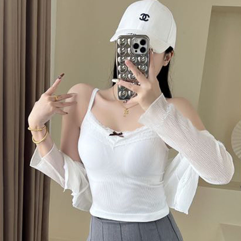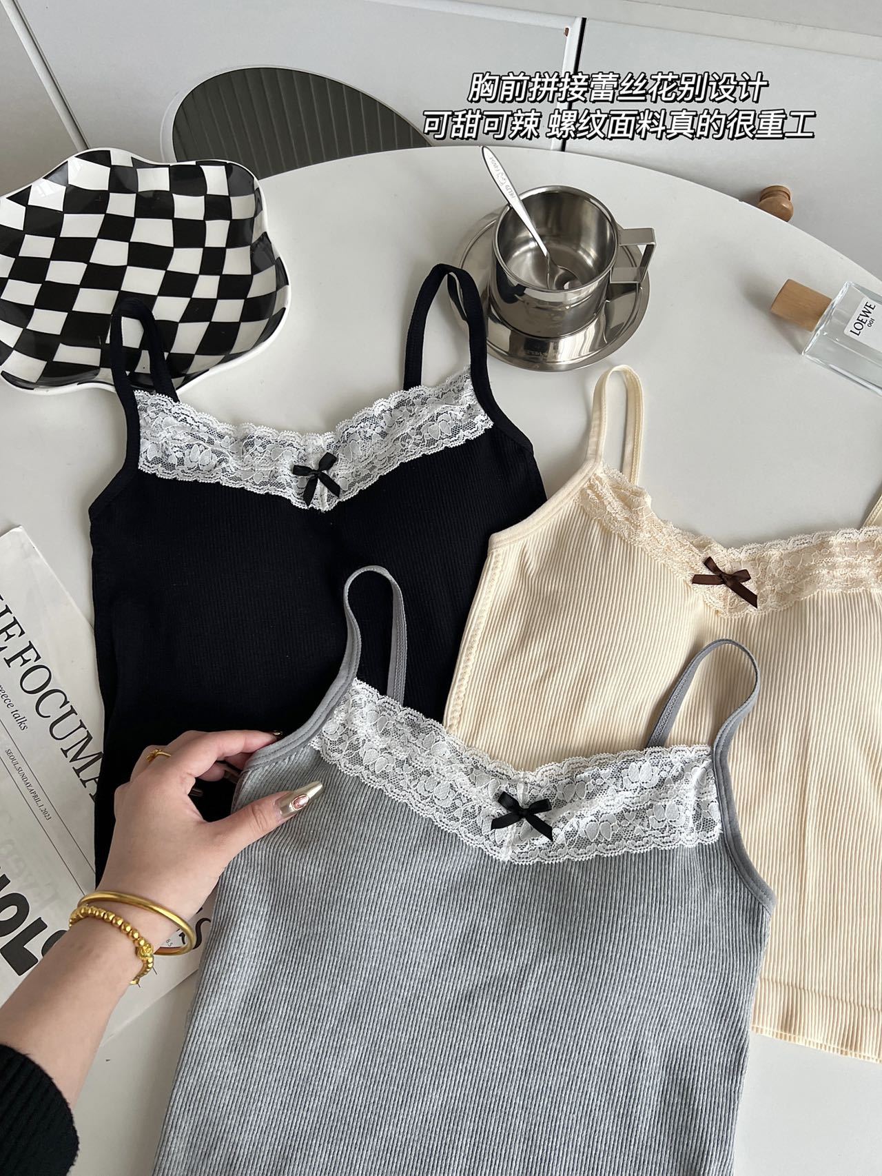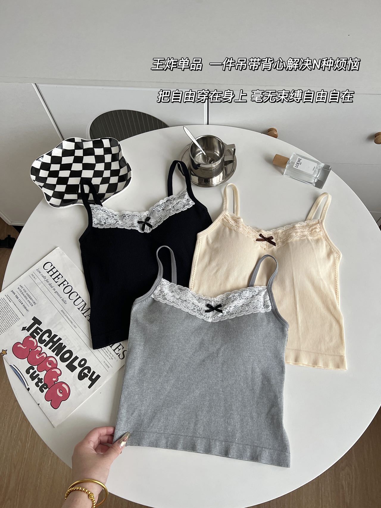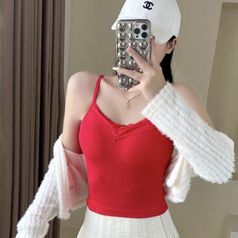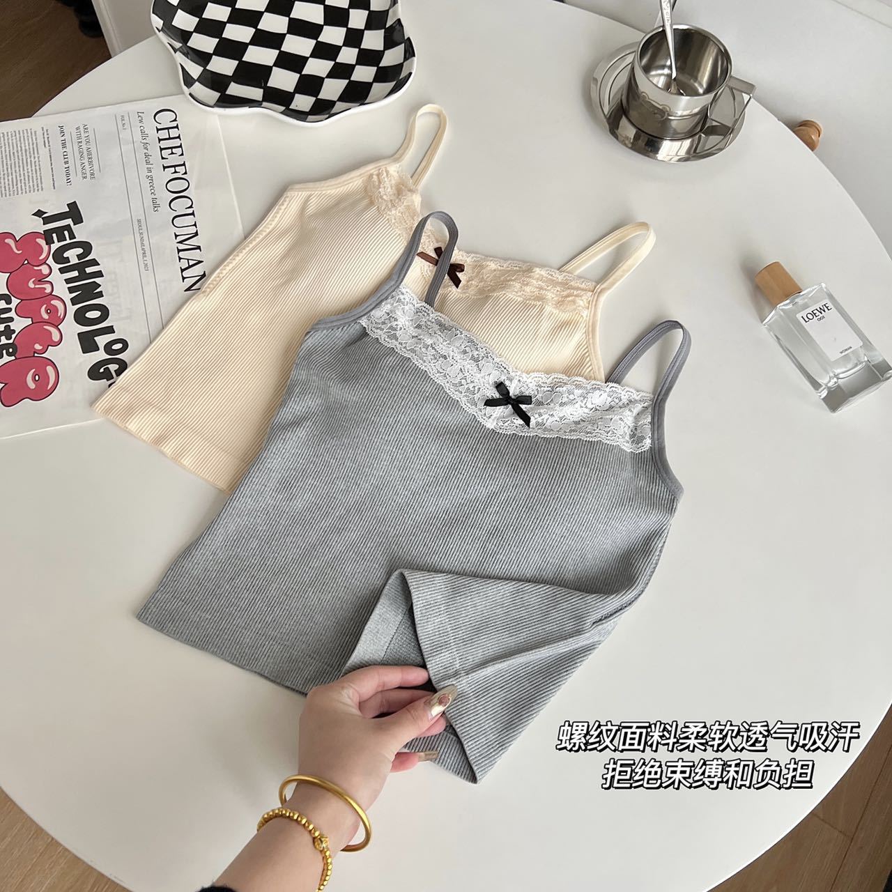 향신료 소녀 레이스 순수한 욕망 카미솔 여름 조끼 가슴 패드 내면베이스 슬림 핏 아름다운 등 통합 고정 컵 매직 구멍스토어 가기
