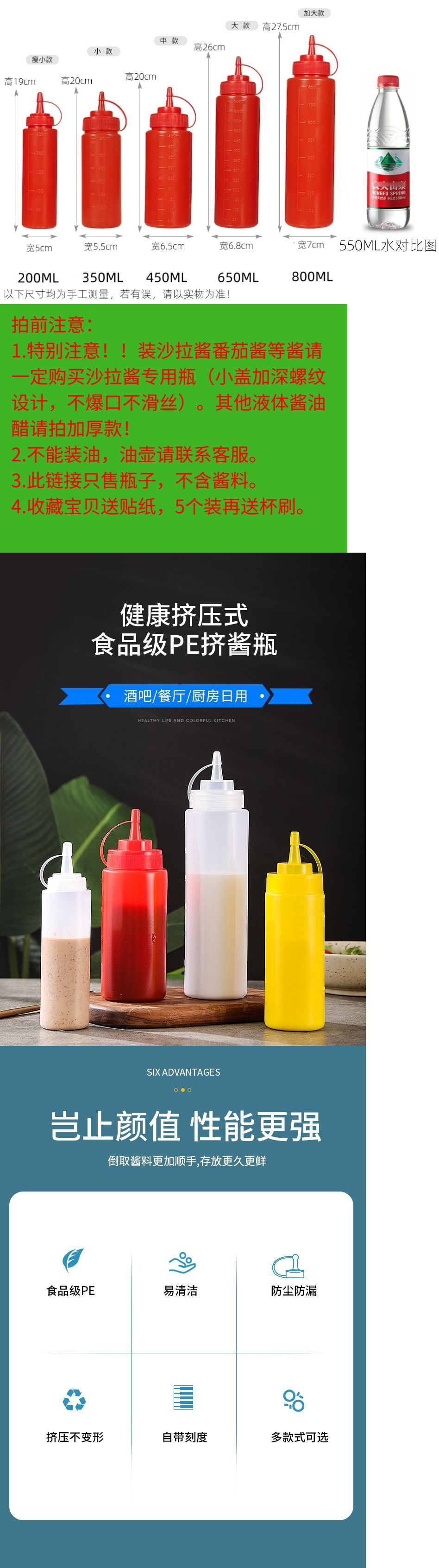 폭발 방지 스퀴즈 소스 병 샐러드 소스 토마토 꿀 잼 짜기 병 조미료 병 식초 오일 포트 우유 차 가게 가정용 상업스토어 가기
