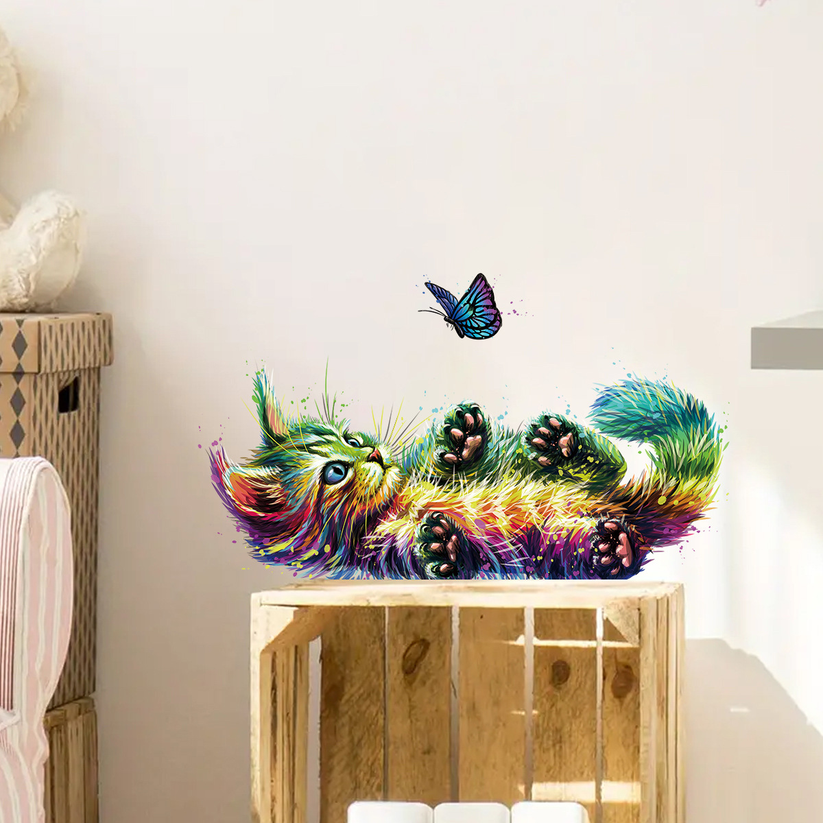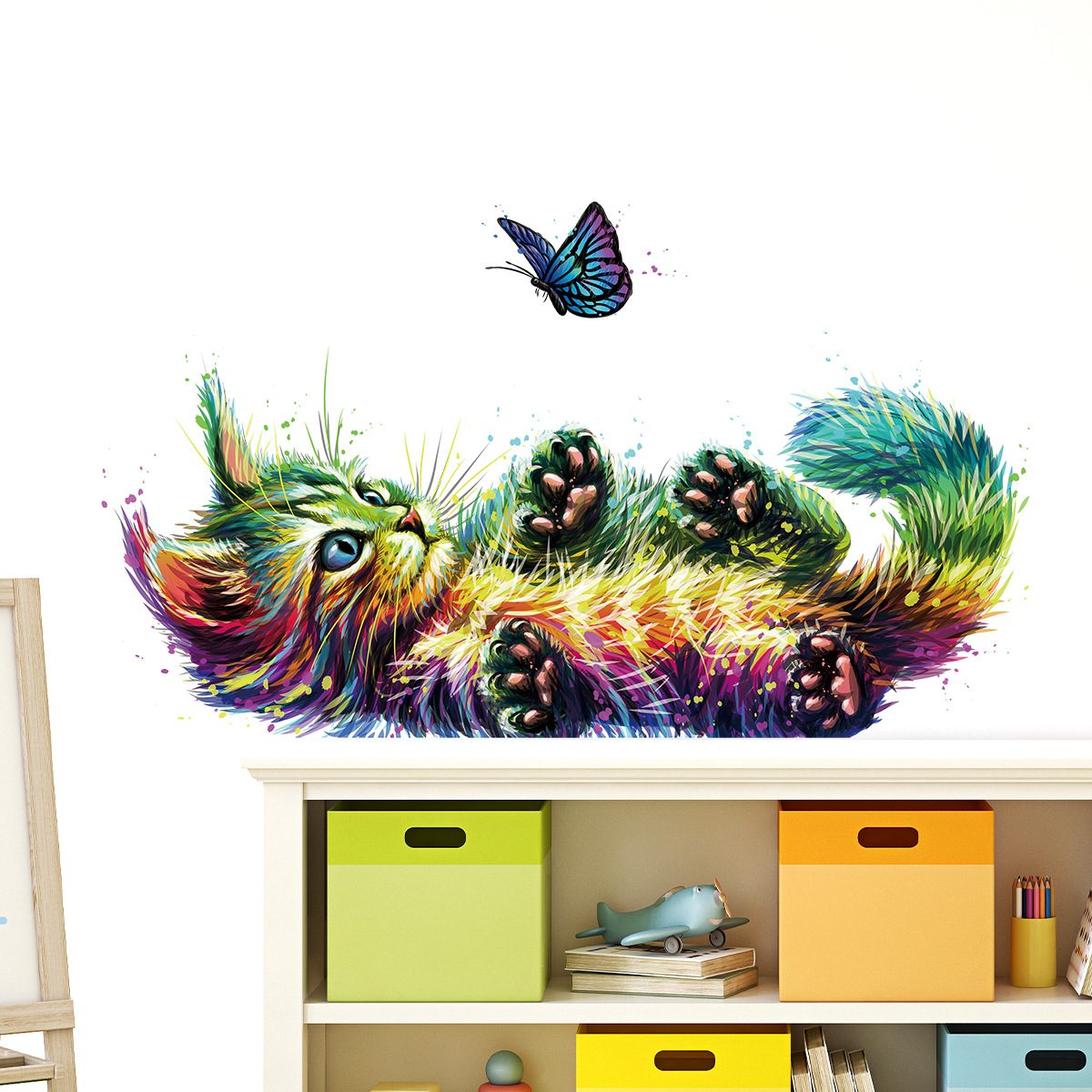만화 귀여운 컬러 고양이 나비 자기 접착 벽 스티커 방 거실 배경 벽 장식 스티커 BR0989C