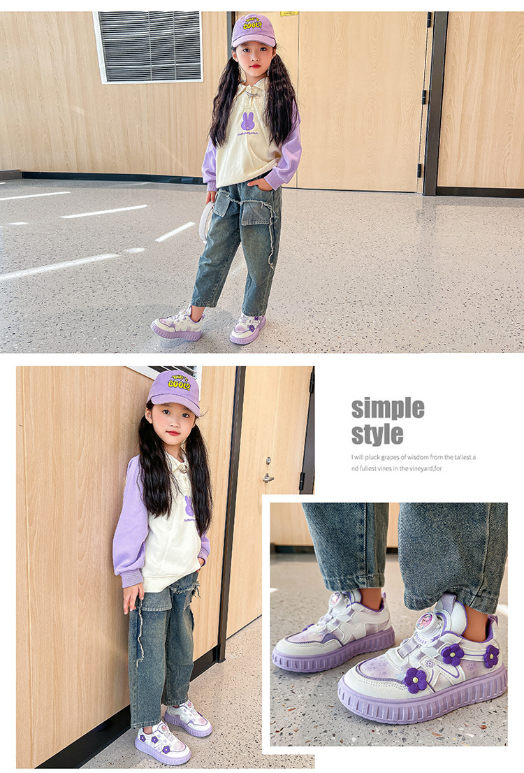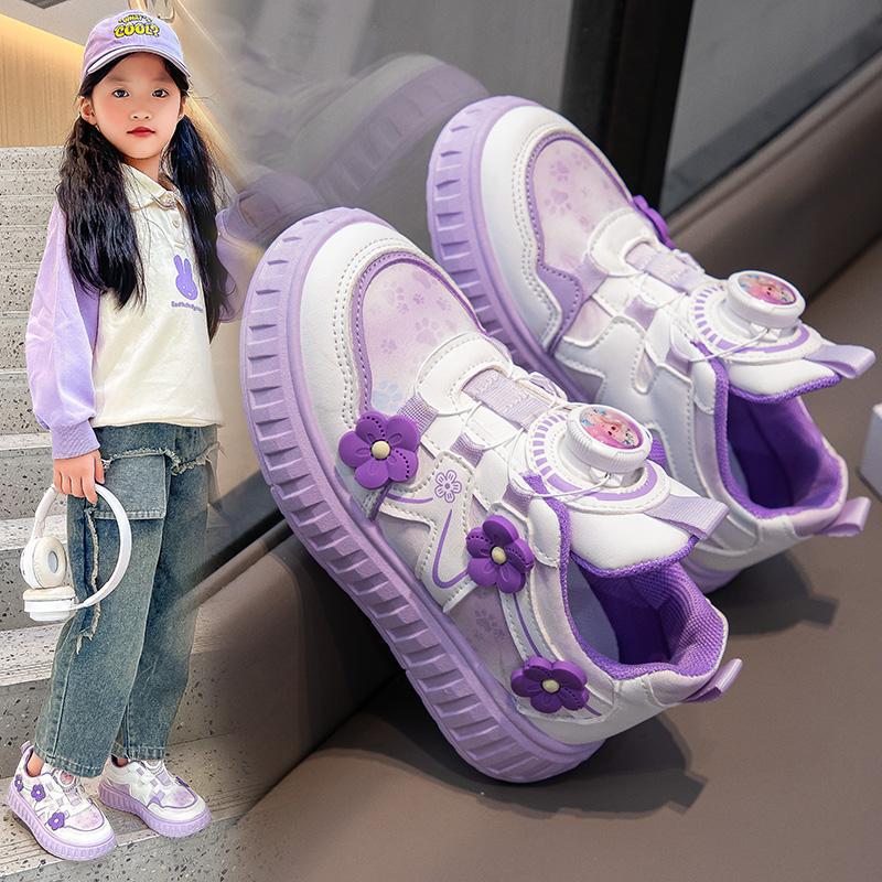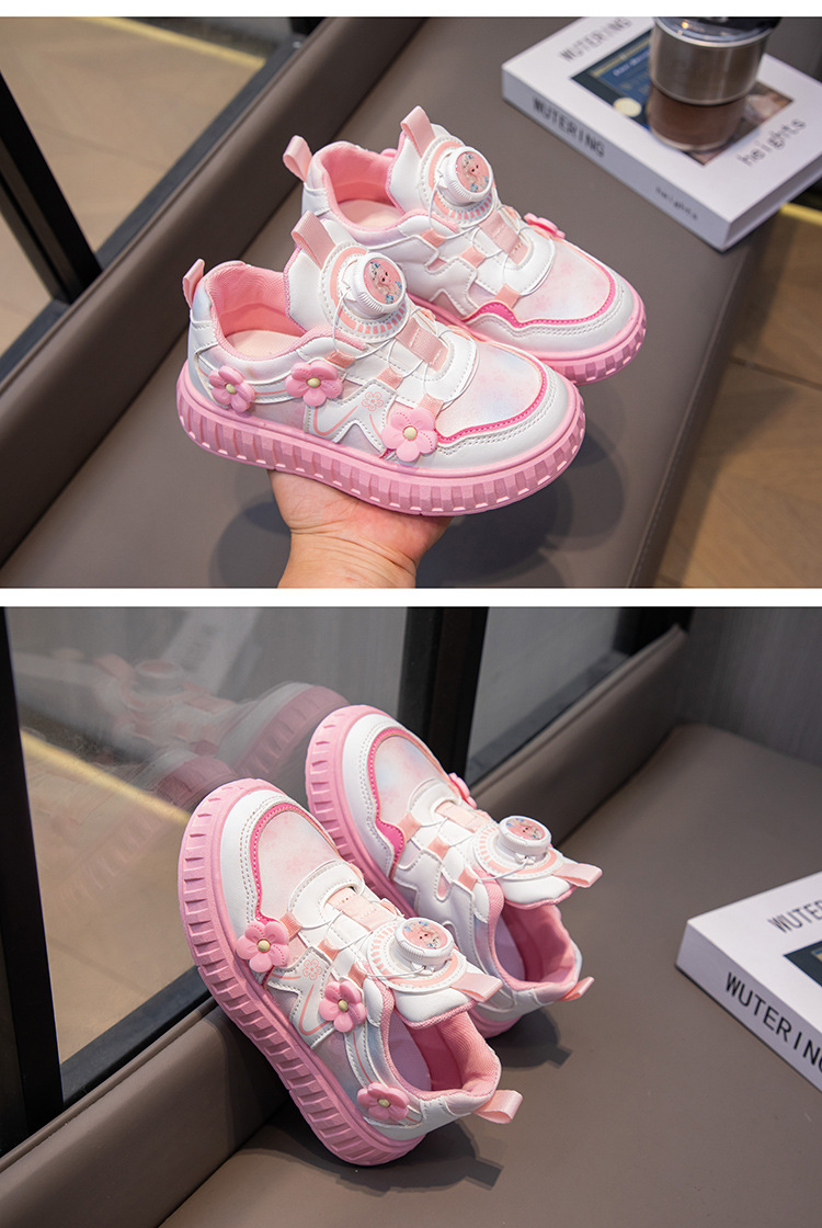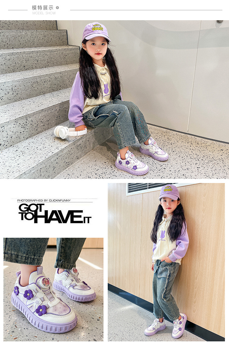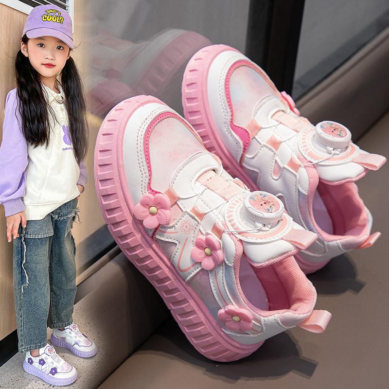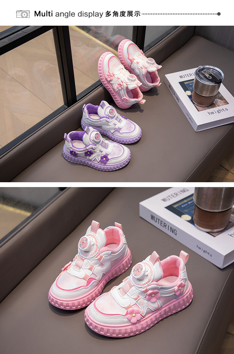 어린이 회전 버클 운동화 소녀 신발 2024 새로운 가을과 겨울 가죽 소녀의 큰 소년의 부드러운 바닥 아버지스토어 가기