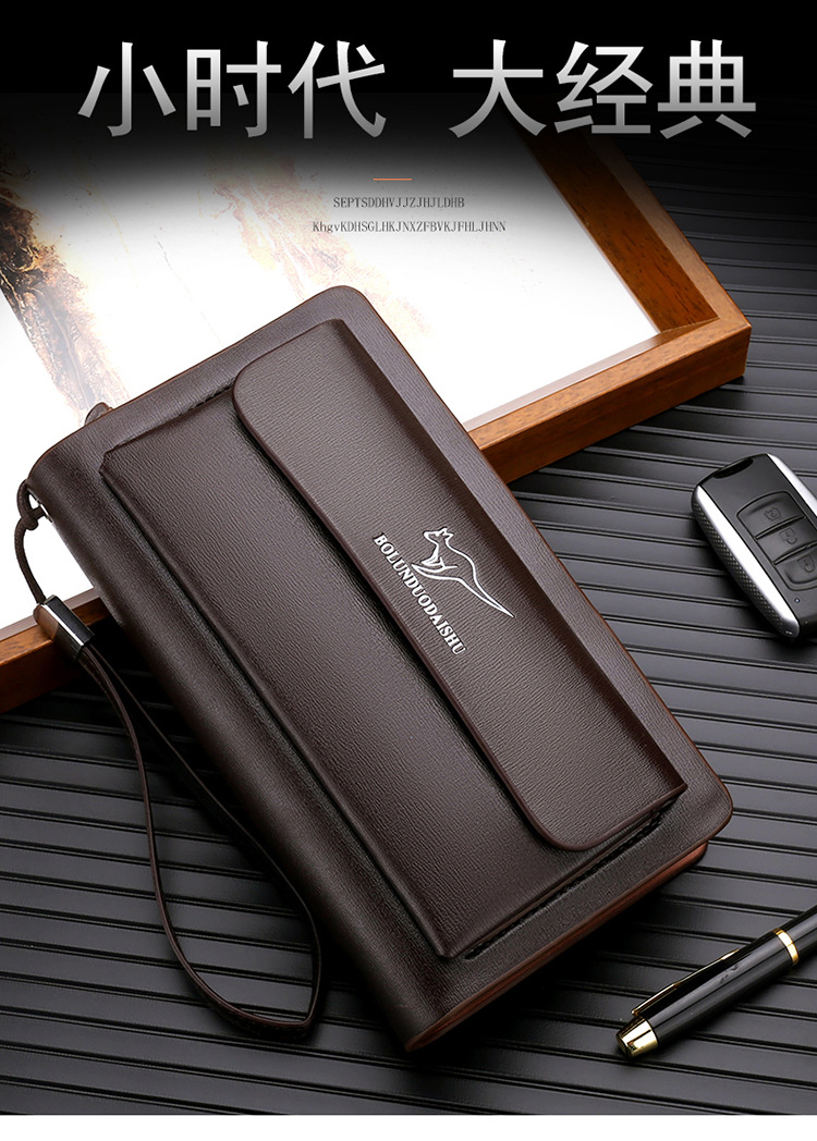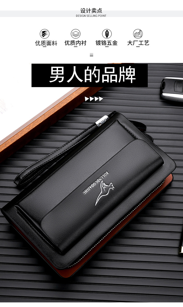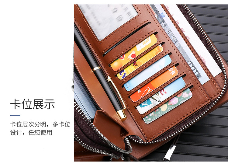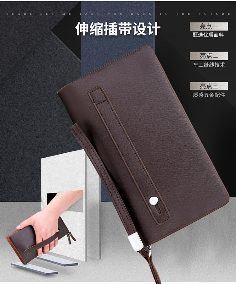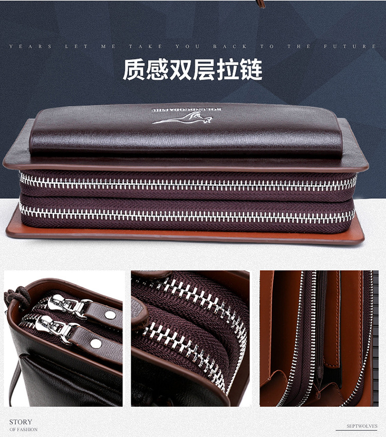 대외 무역 단일 남성 비즈니스 질감 부드러운 가죽 핸드백 지퍼 대용량 휴대 전화 가방 패션 통근 다중 구획 카드 가방스토어 가기