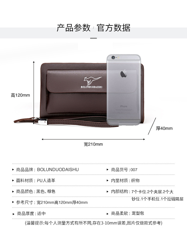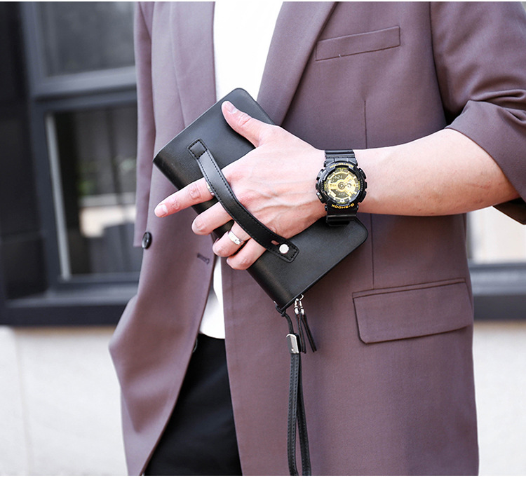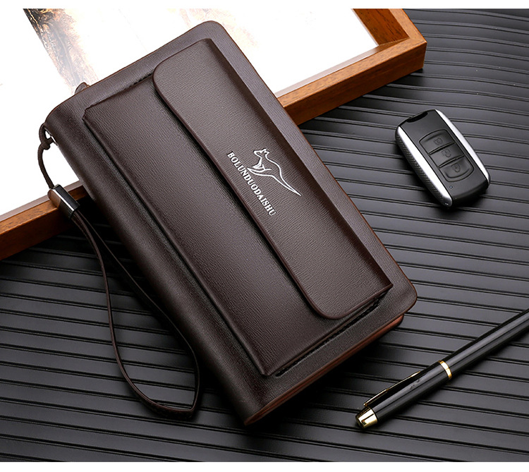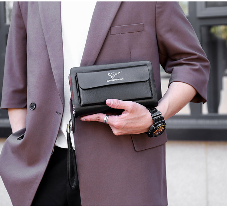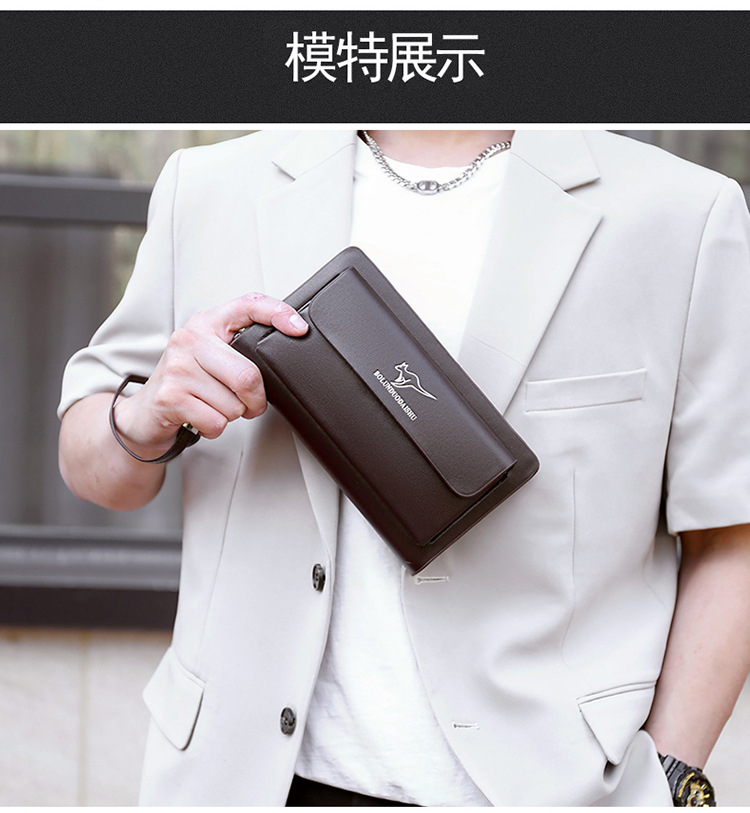 대외 무역 단일 남성 비즈니스 질감 부드러운 가죽 핸드백 지퍼 대용량 휴대 전화 가방 패션 통근 다중 구획 카드 가방스토어 가기