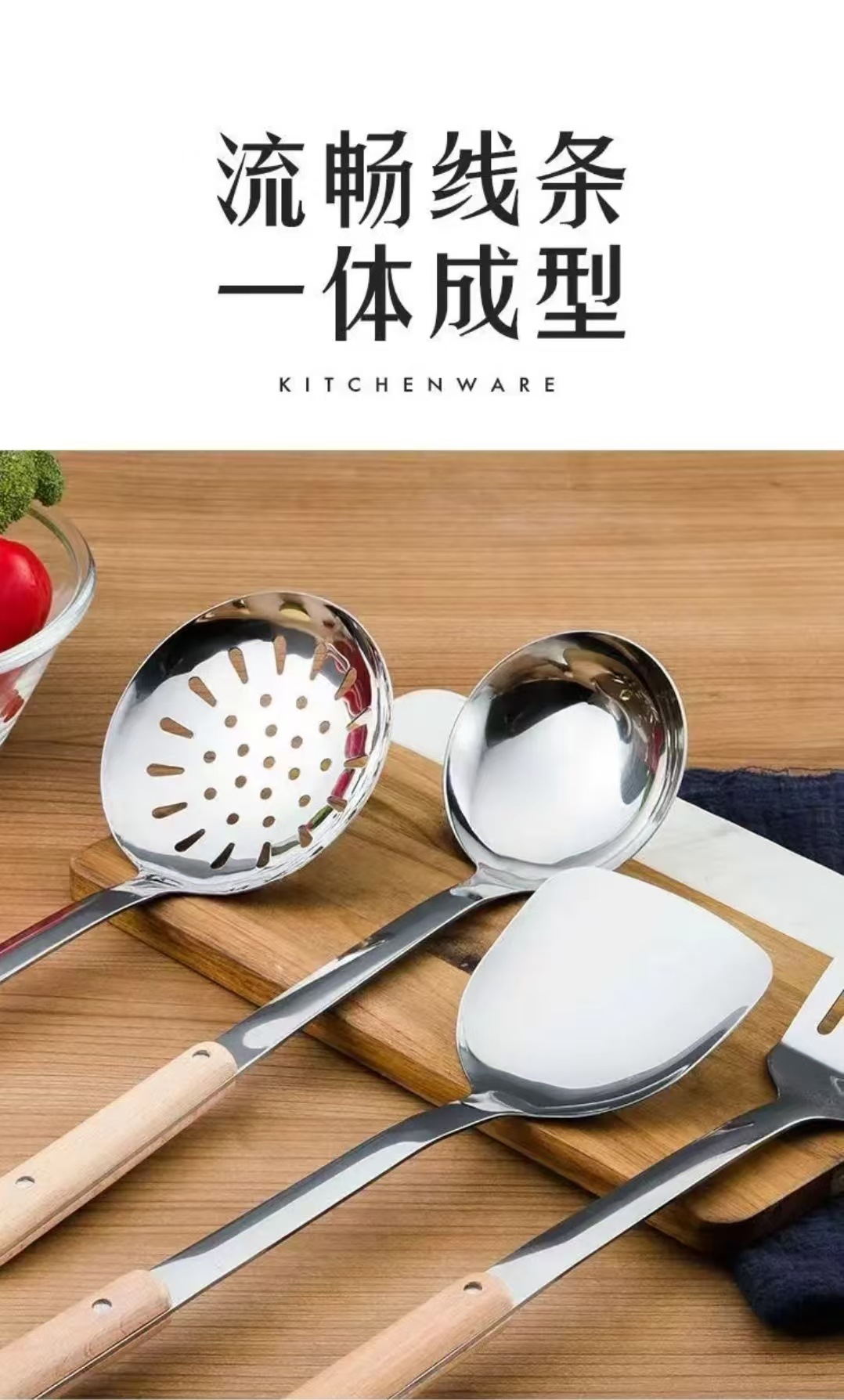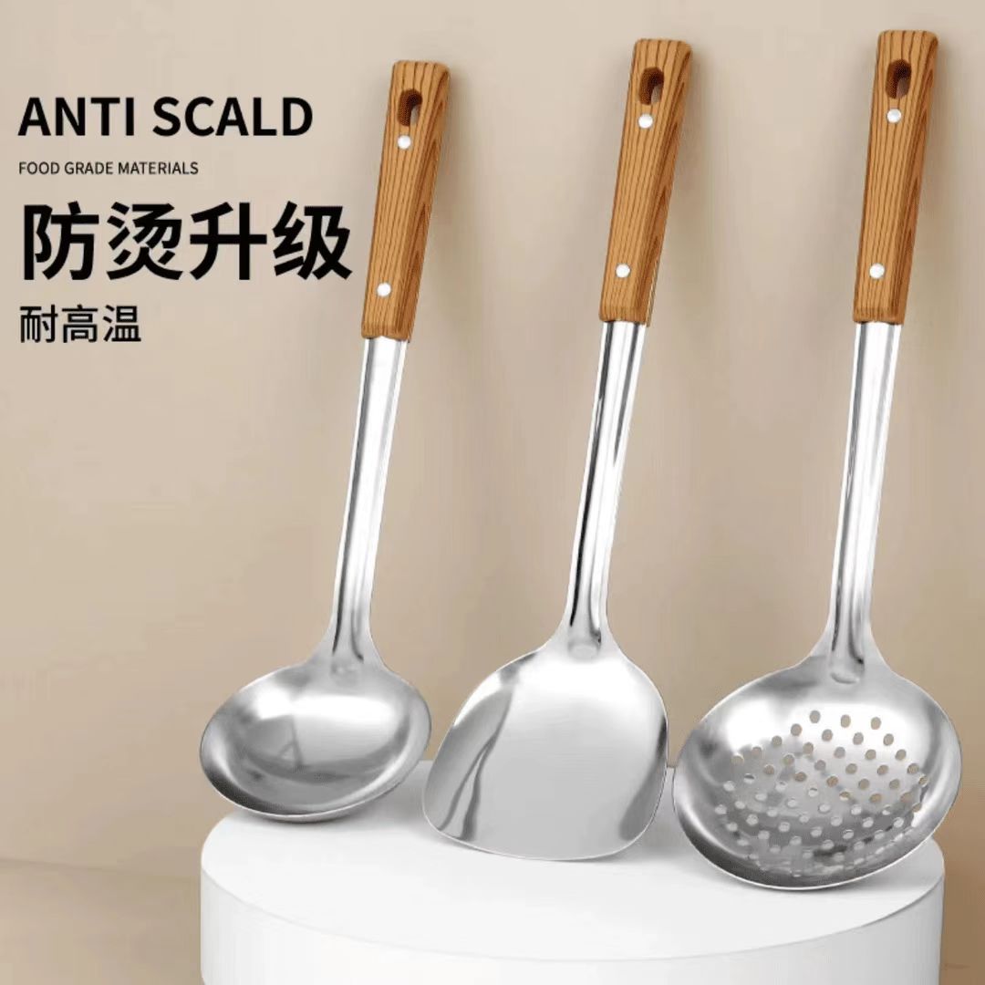 나무 손잡이 스테인리스 볶음 숟가락 볶음 삽 볶음 주방 두꺼운 주걱 주방 요리 나무 손잡이 세트 볶음 숟가락 주걱 스푼