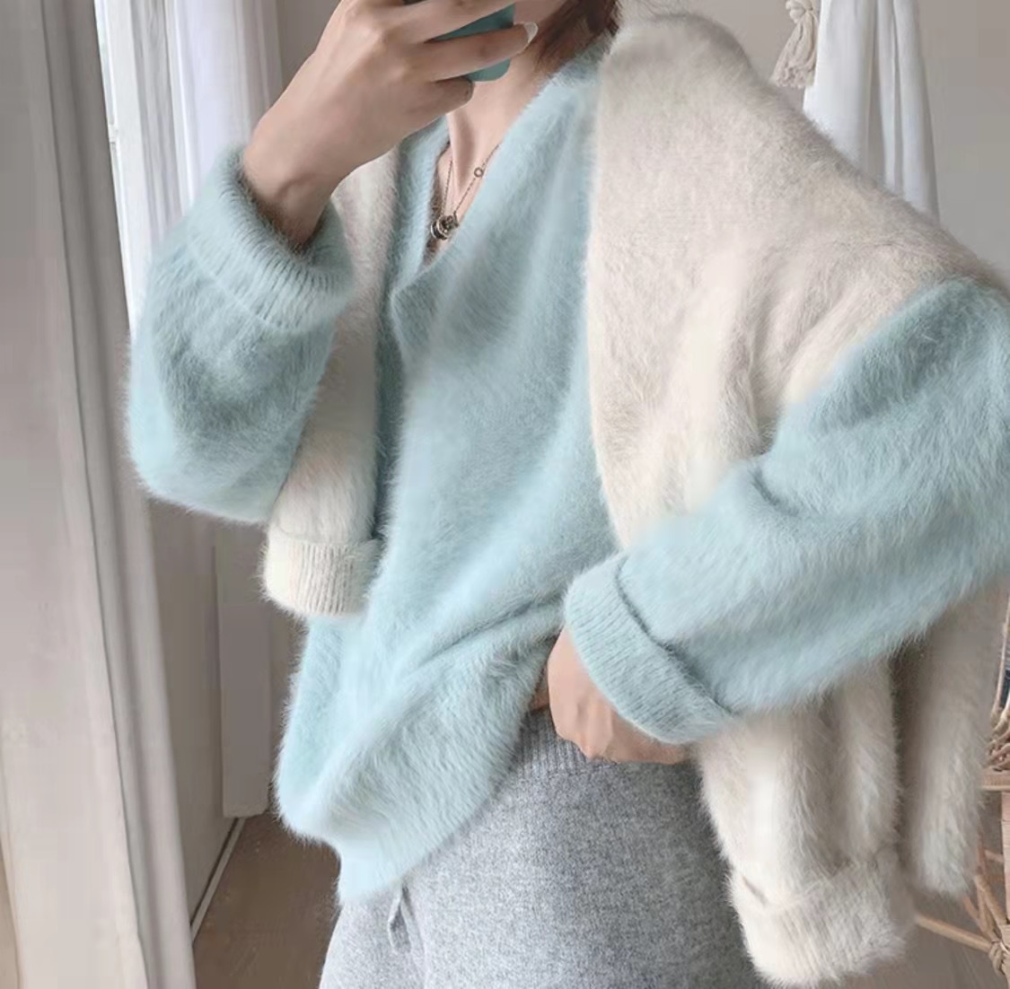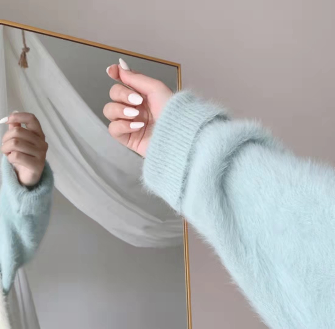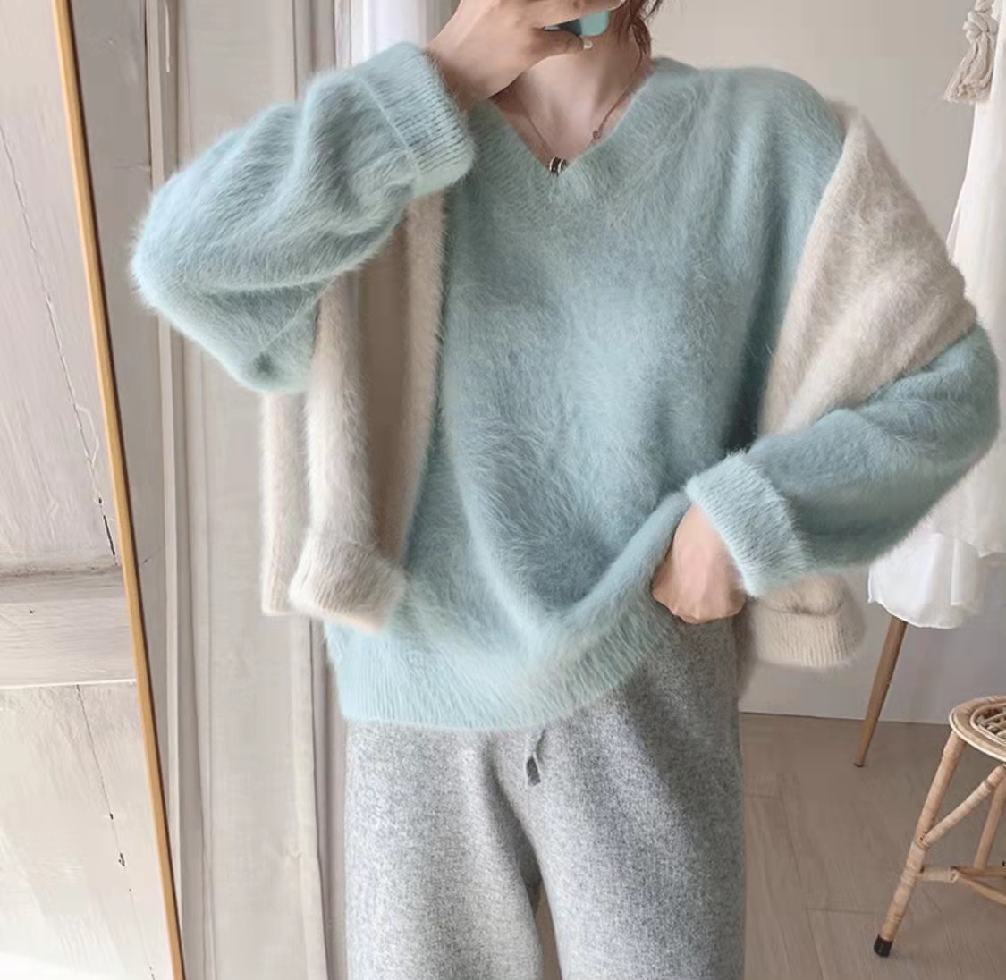 2024水貂毛v领毛衣套头温柔日系女冬加厚慵懒风毛衣女