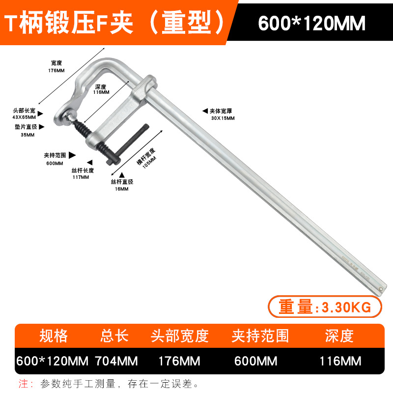 • Daliwei [공업용 등급] 단조 F 클램프 600x120mm 가이드 레일(22x11)