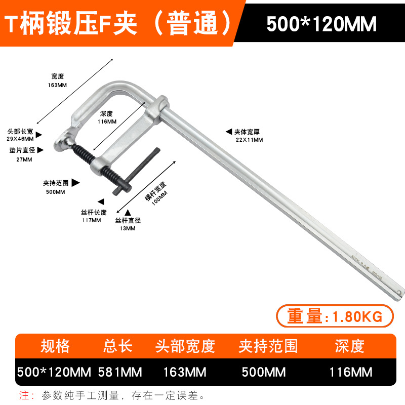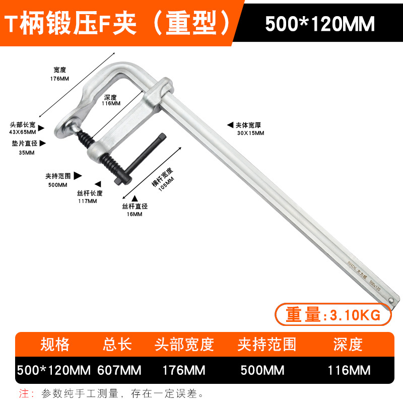 • Daliwei [산업용 등급] 단조 F 클램프 500x120mm 가이드 레일(22x11)