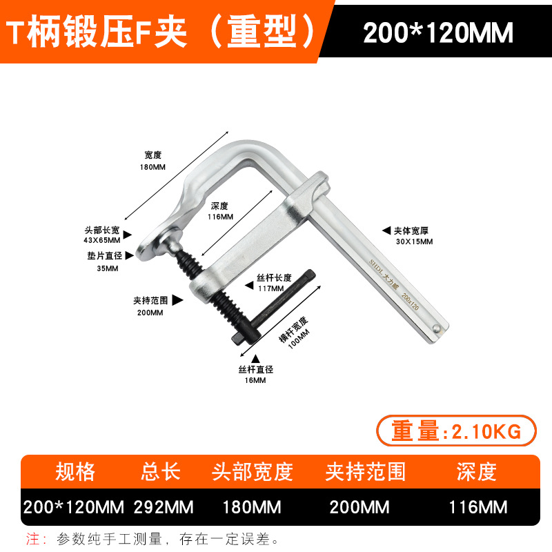 • Daliwei [산업용 등급] 중부하 단조 F 클램프 200x120mm 가이드 레일(30x15)