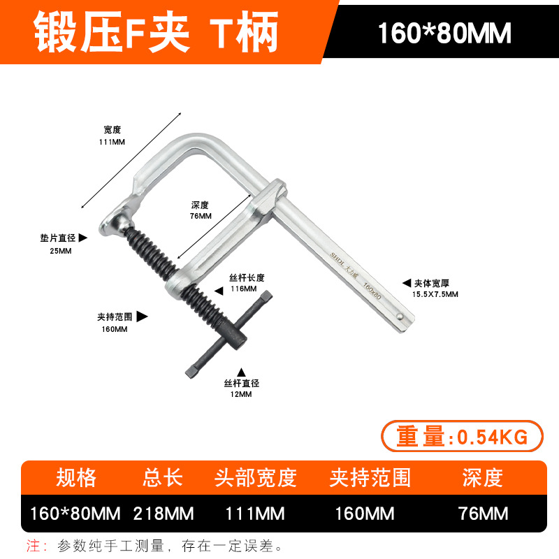 • Daliwei [산업용 등급] 단조 F 클램프 160x80mm 가이드 레일(15.5x7.5)