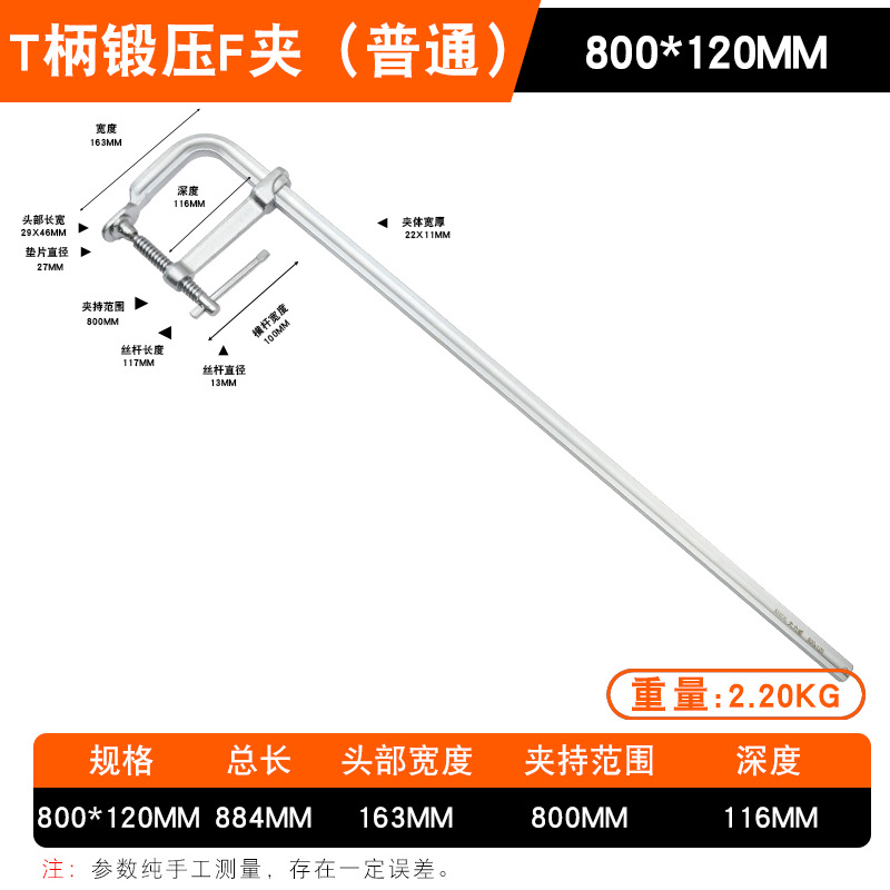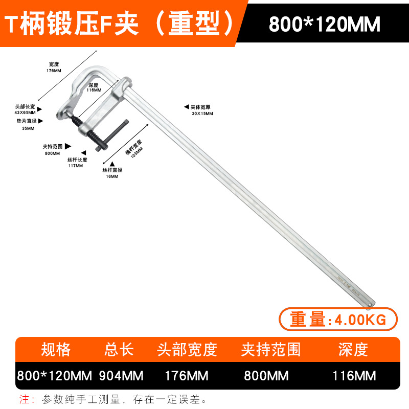 • Daliwei [산업용 등급] 단조 F 클램프 800x120mm 가이드 레일(22x11)