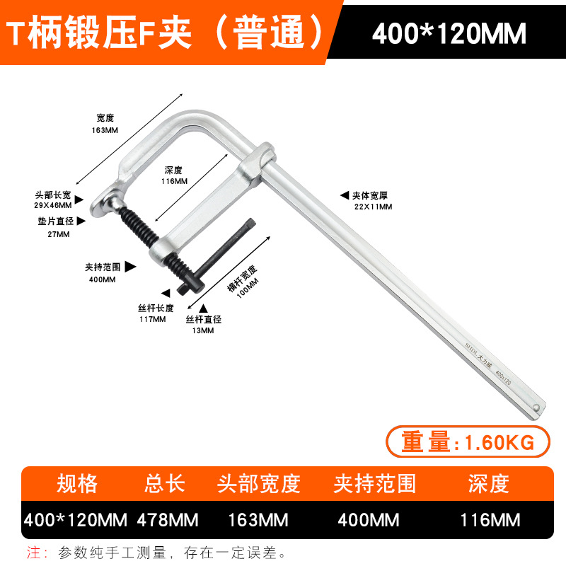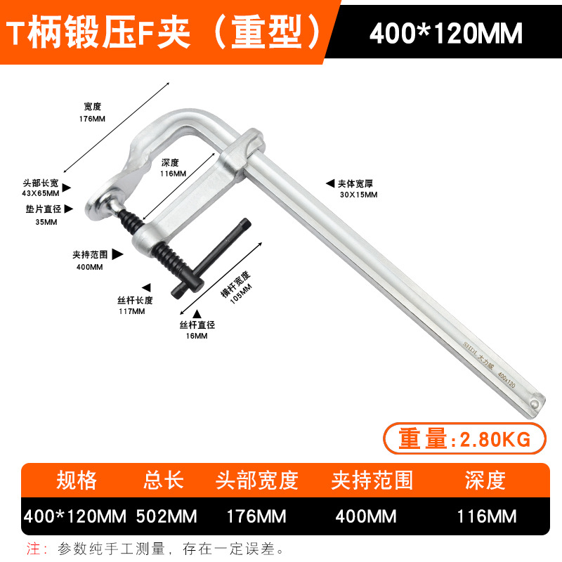 • Daliwei [산업용 등급] 단조 F 클램프 400x120mm 가이드 레일(22x11)
