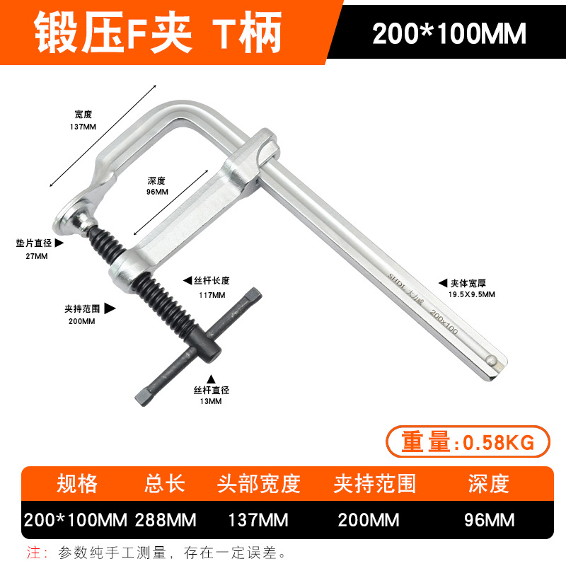 • Daliwei [산업용 등급] 단조 F 클램프 200x100mm 가이드 레일(19.5x9.5)